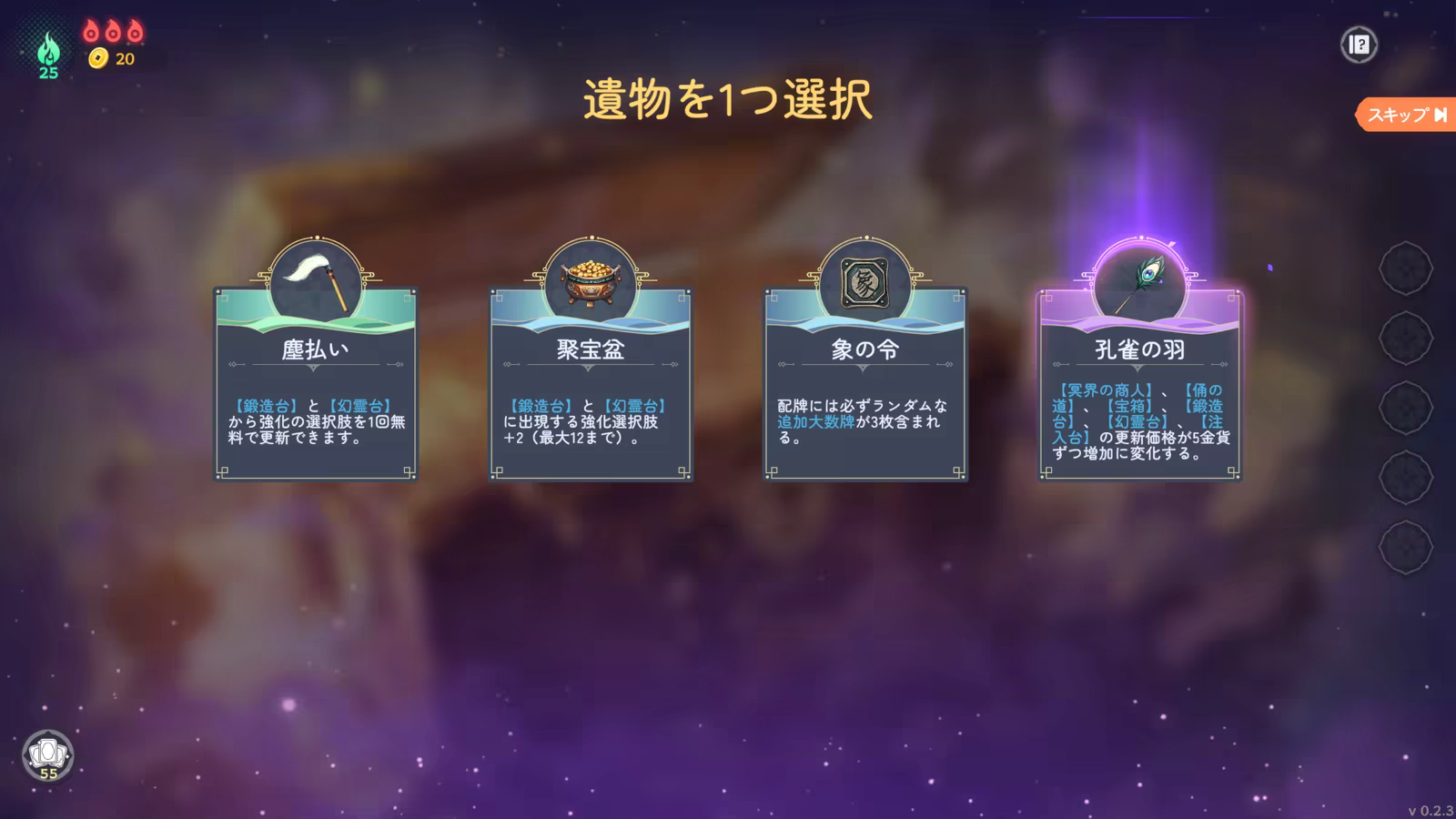 • 100種類の遺物——対局を強力にサポートするバフや、永続的な成長効果を提供!