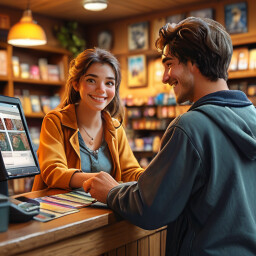 Administra tu propia tienda de cartas, vende sobres y artículos coleccionables, fija precios, atiende clientes y haz crecer tu negocio mientras coleccionas más de 800 cartas únicas.