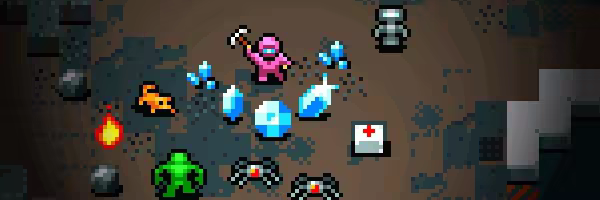 Some level tiles can be mined by player and yield different forms of loot and treasure. Beware, however, as the mining activity can also make (more) nasties aware of your presence.