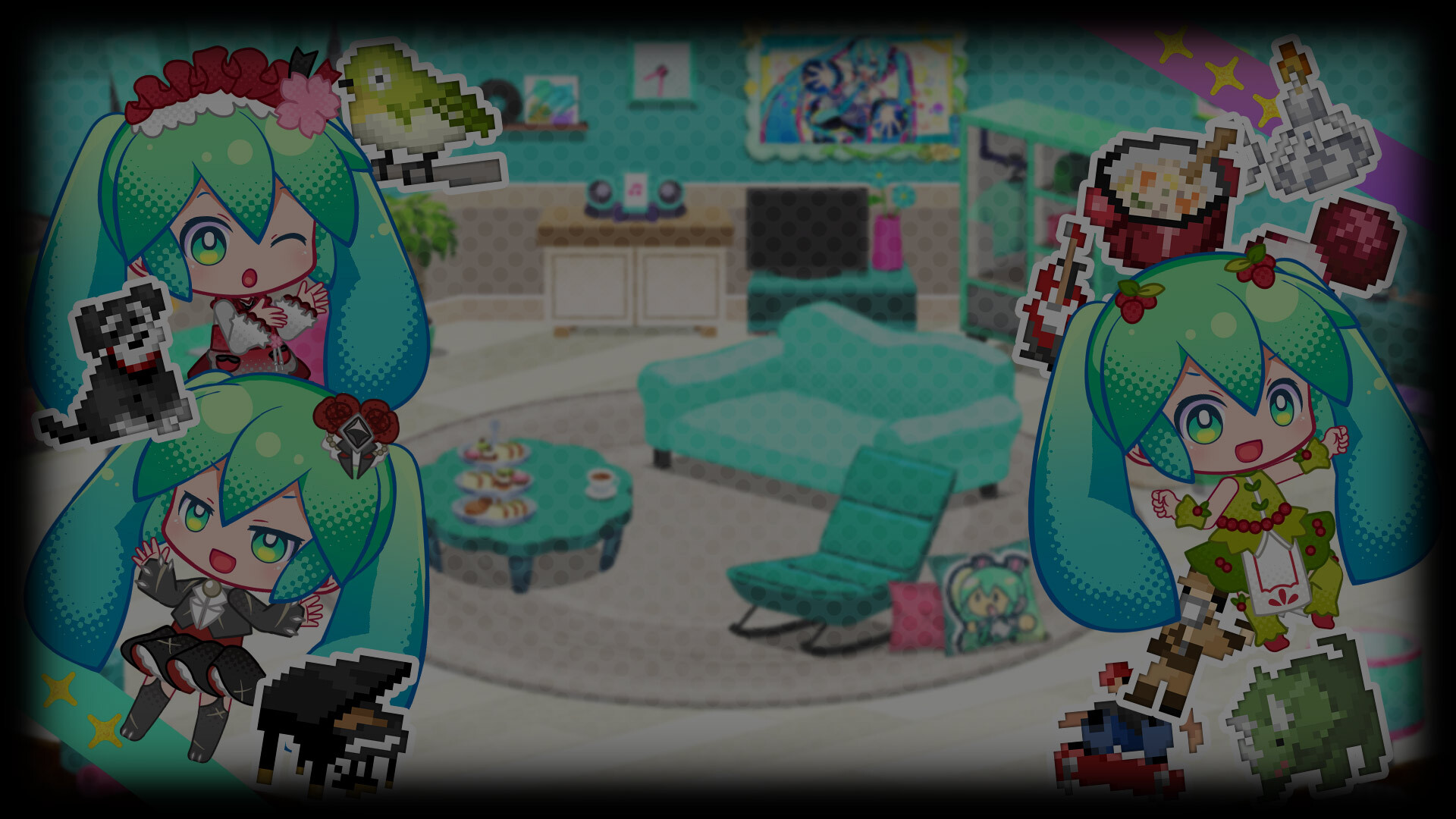 In addition to the Normal Puzzles and all-new illustration-based Special Puzzles, you can also update the appearance of each Piapro character, and even customize your room to your liking.