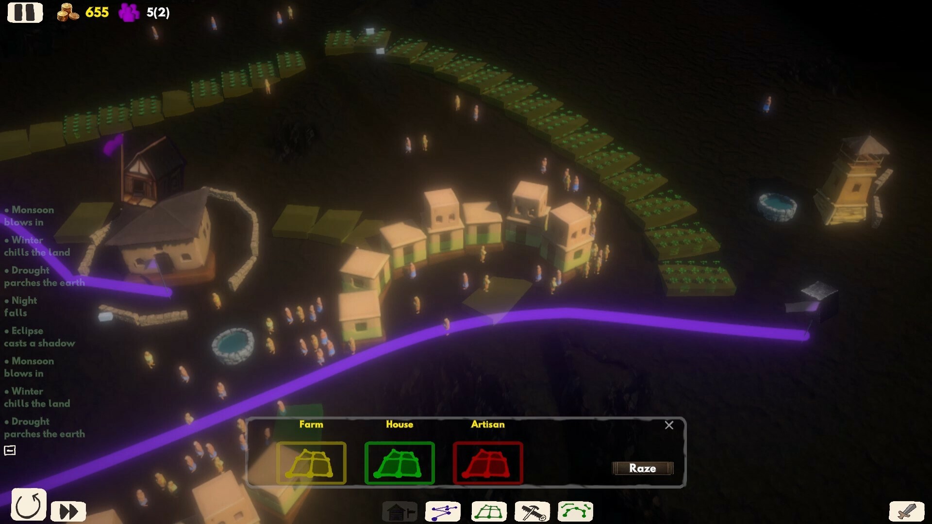 • City-builder style zoning for farmland, residential, commercial.