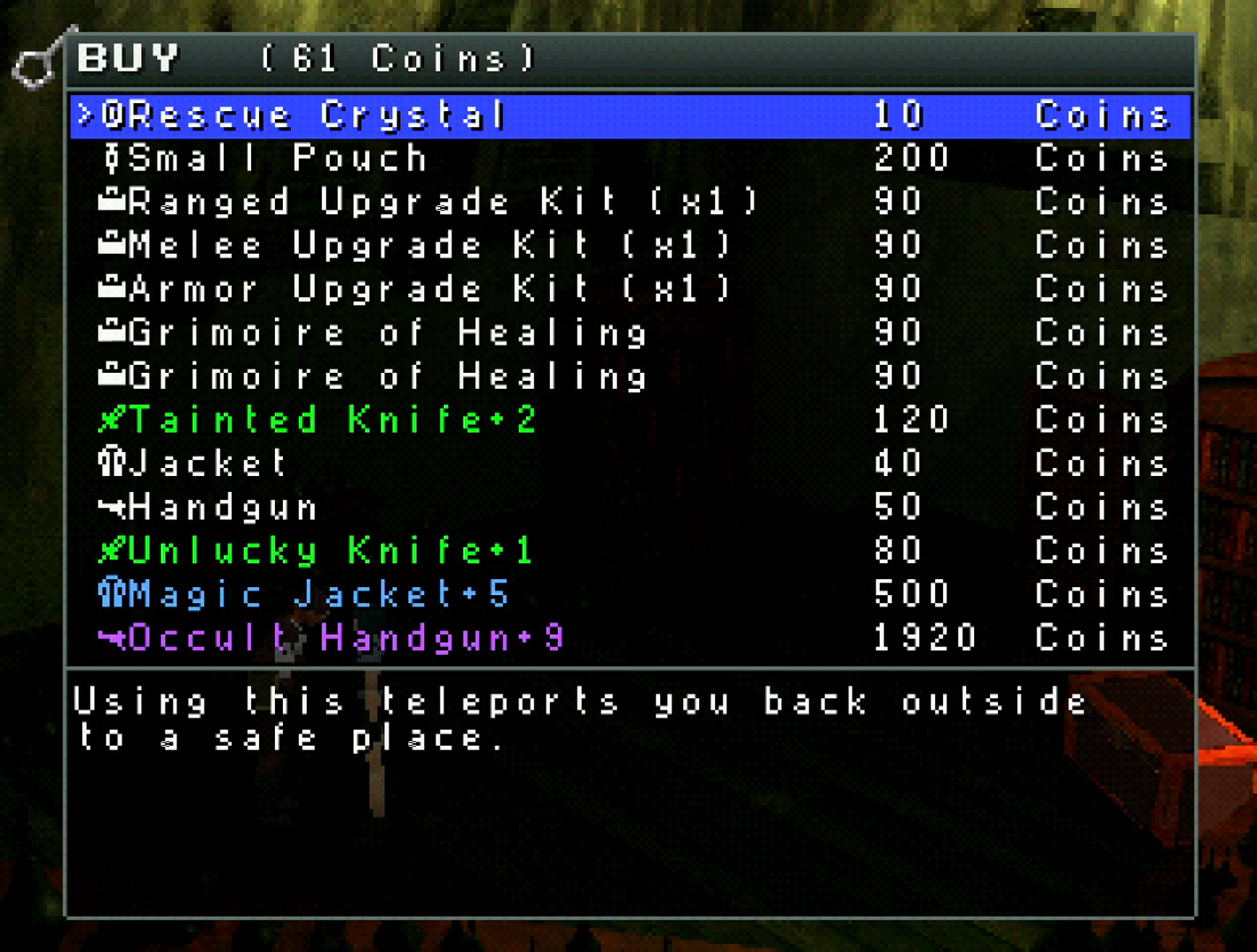 Experience turn-based dungeon-crawling as well as the tank-controlled hubworld, complete with pre-rendered backgrounds!
