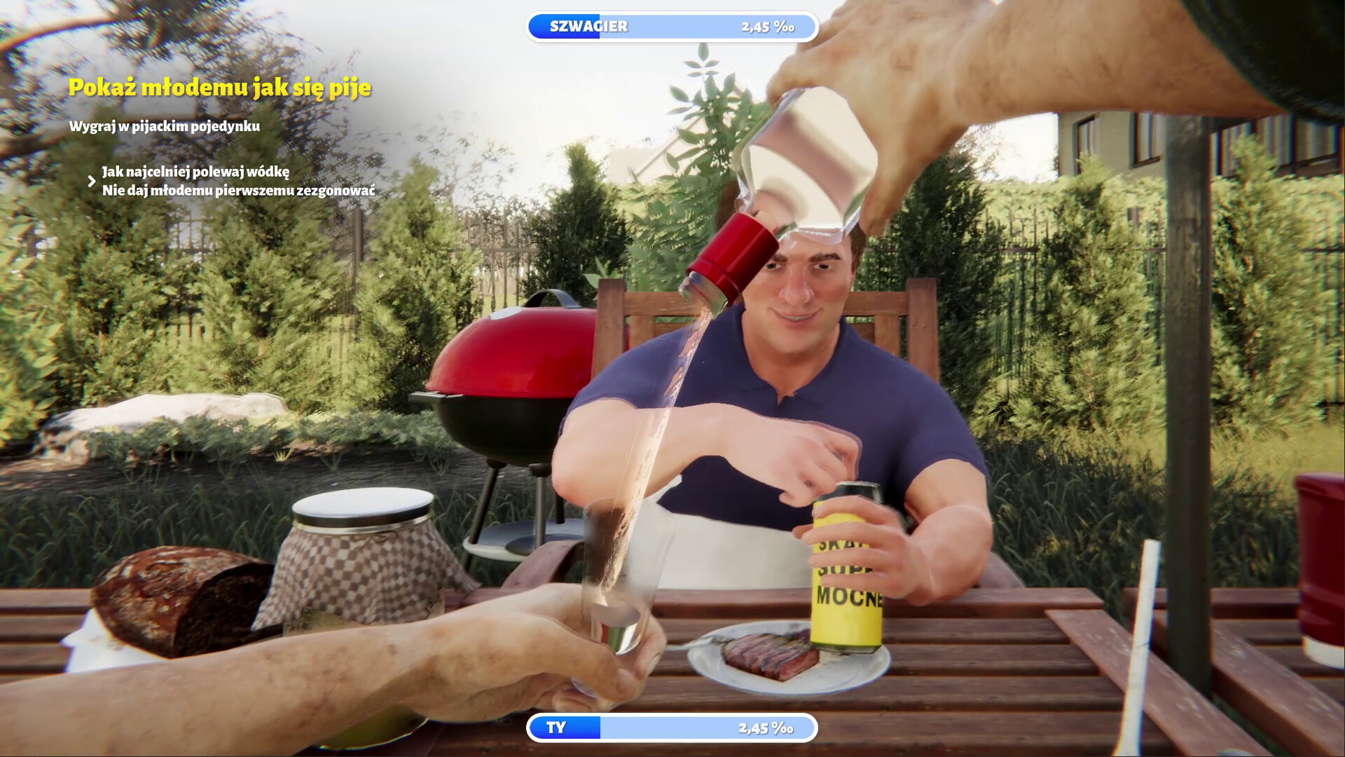 Prawdziwy Polak nie odpuści grilla, tak i też jest w tym wypadku. Wykonuj różne aktywności, możesz przykładowo wziąć udział w pojedynku na mocną głowę, musisz przecież pokazać śwagrowi, jak się pije.