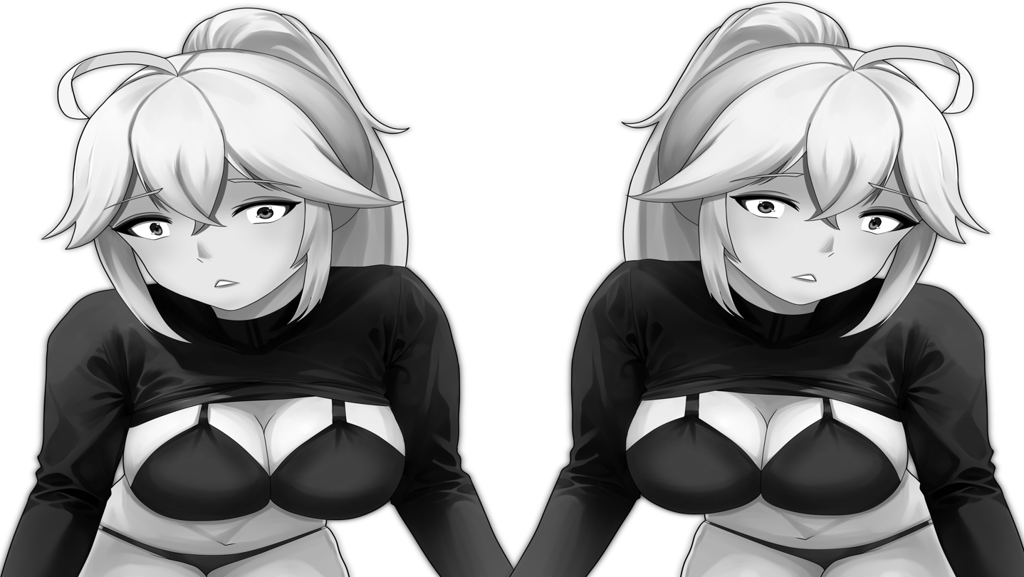 The character is lightly dressed. The mirror allow you to modify the size of some body part.