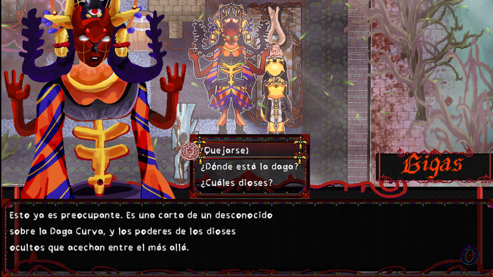 Demiurge Sacrifice se destaca por hacer uso de estéticas visuales divididas dependiendo del mundo o escenario del juego.