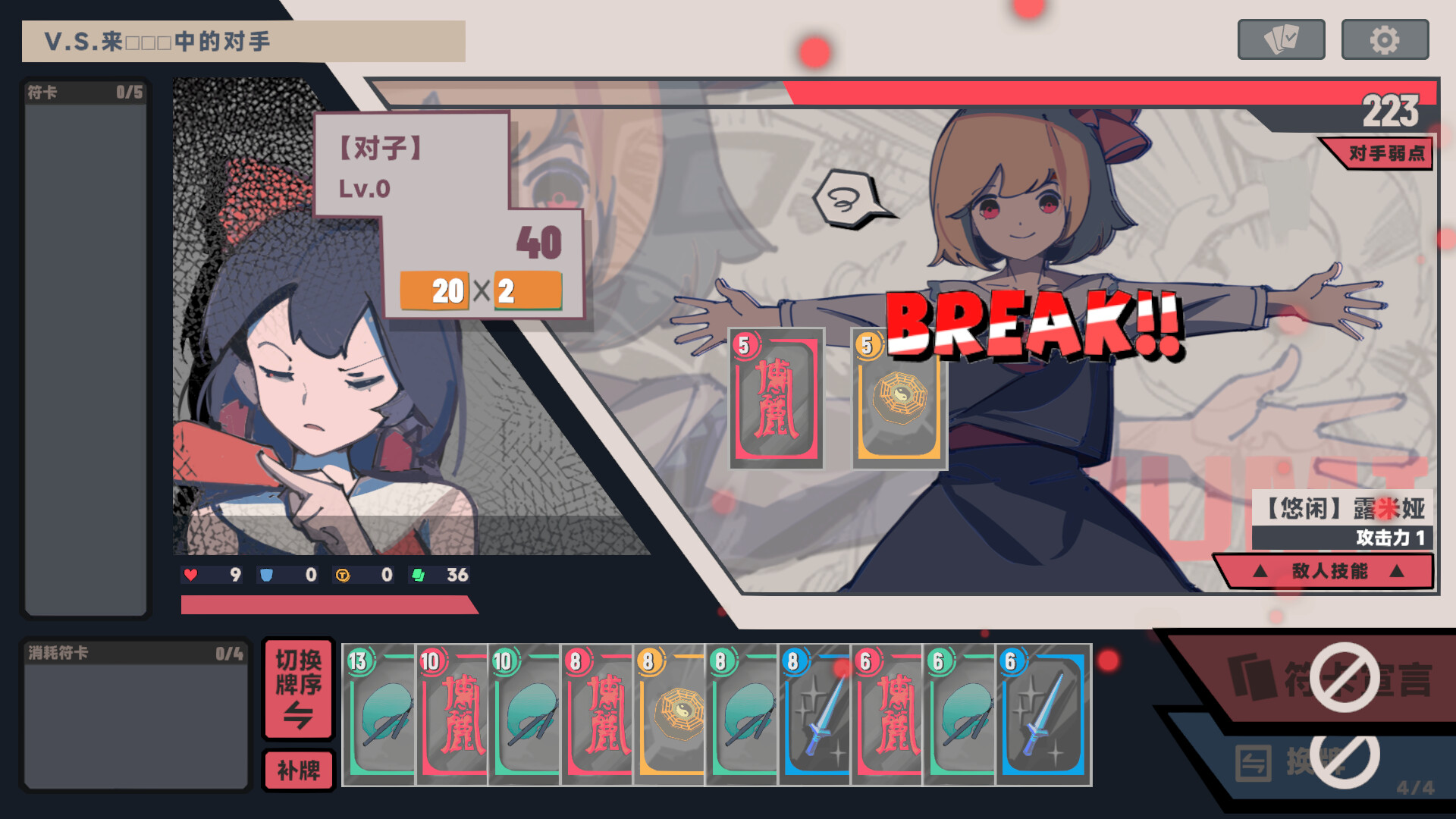 队伍需要面对的敌人也是出自东方Project,每个敌人根据自己的特性,也都携带着有趣的技能机制——选择合适的时机打出Break,亦或者不顾一切的ALL IN 斩杀,全凭你的选择。