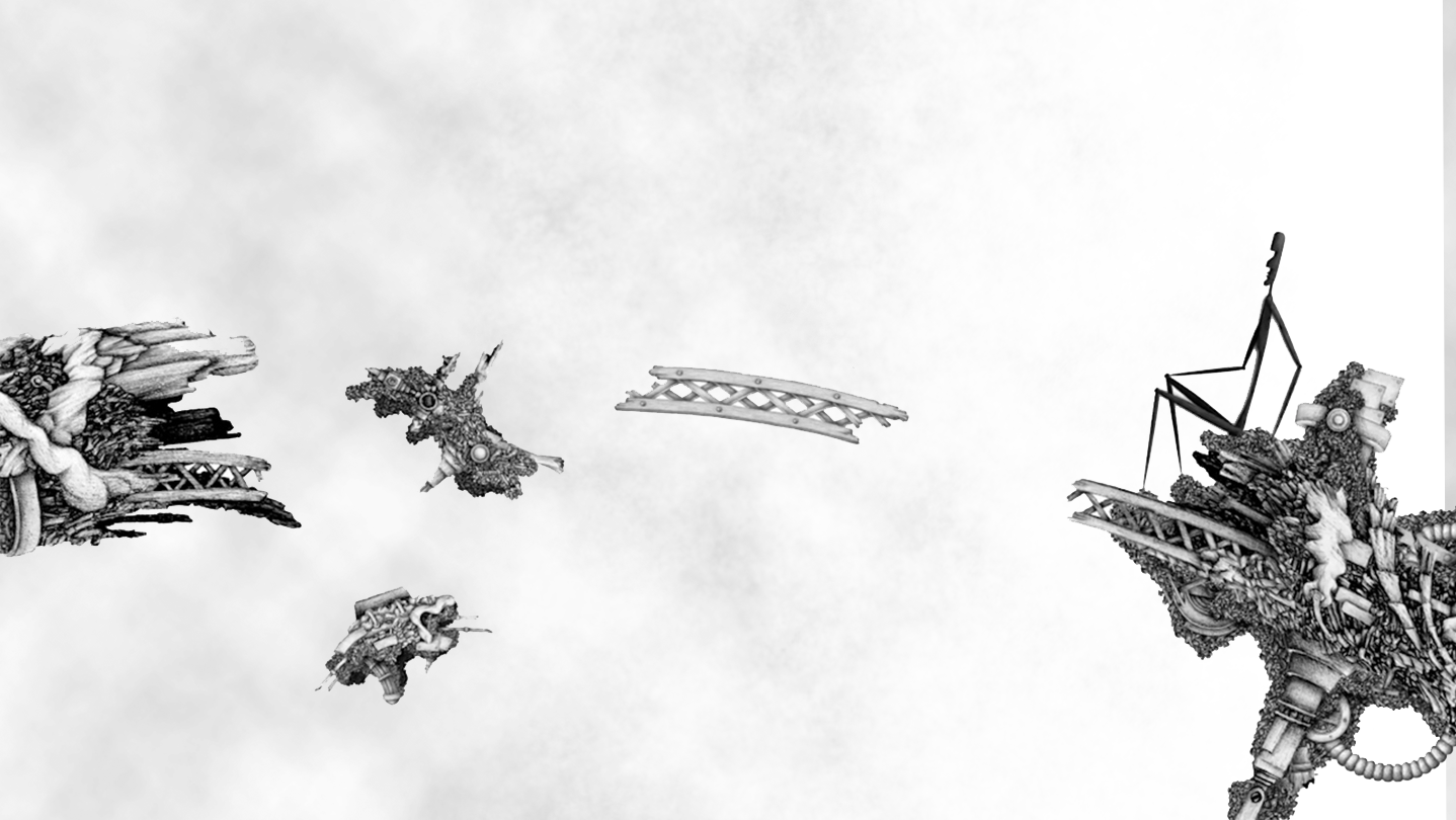 In a collapsing world, a fragile Sphere rises but its path is blocked by drifting debris—remnants of intricate, fragmented machines that still pulse with life. To clear the way forward, you must navigate this surreal landscape with keen observation and precise action.