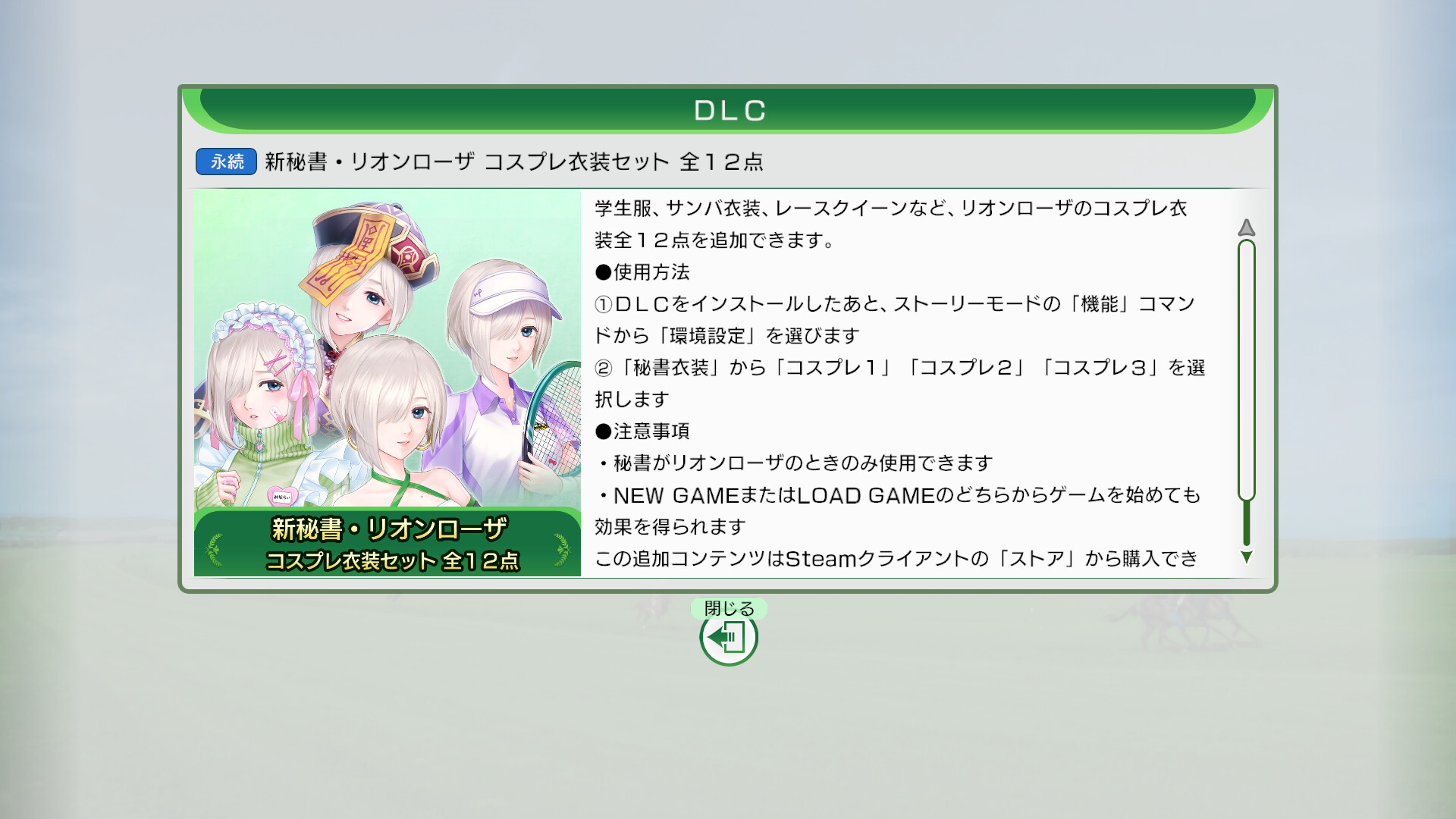 ②「秘書衣装」から「コスプレ1」「コスプレ2」「コスプレ3」を選択します