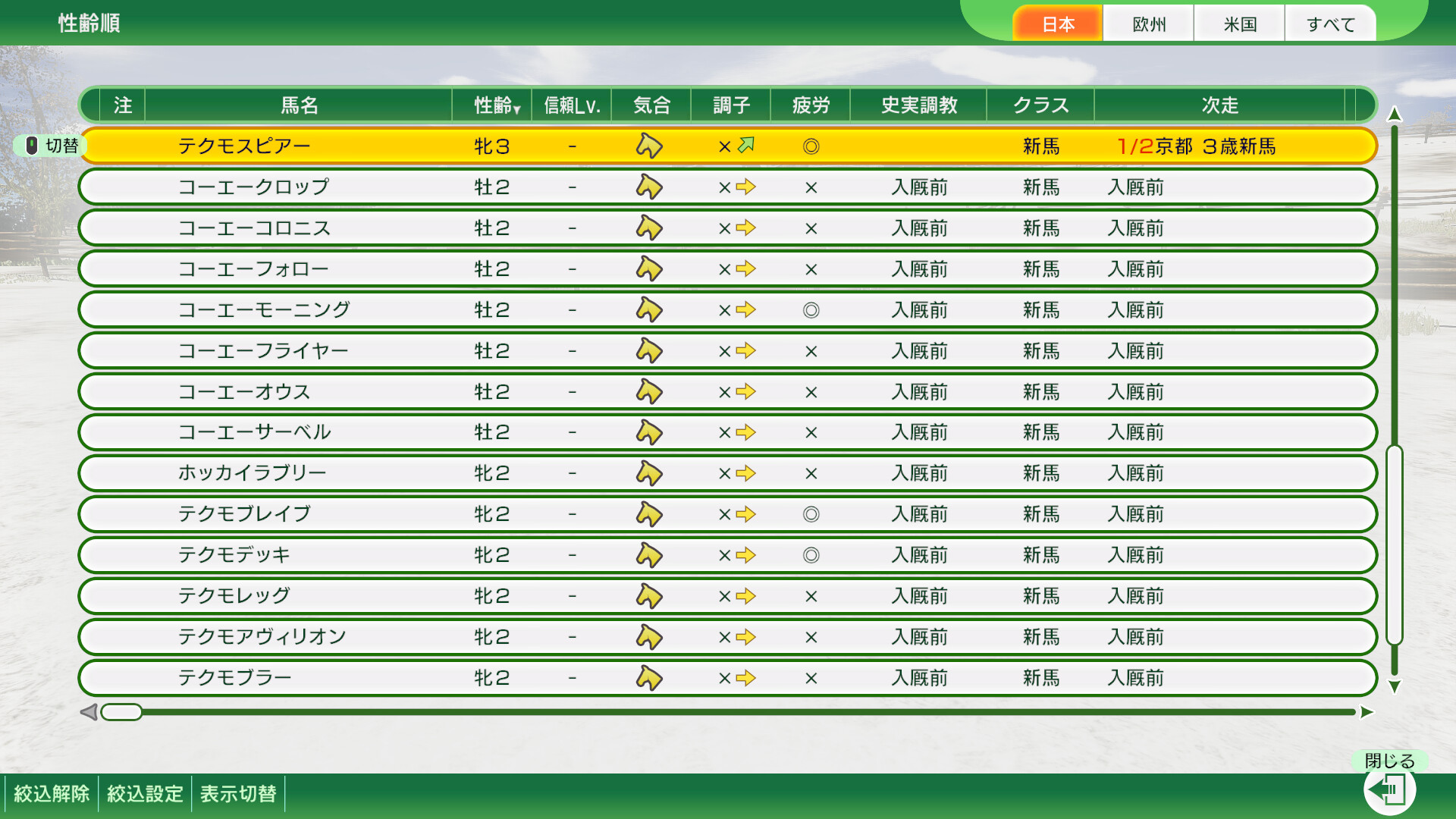 日本、米国、欧州のすべてで、プレイヤーが1世代に所有できる競走馬の数を5増やせます。