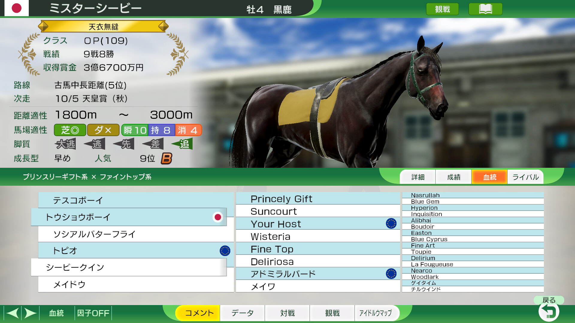 ・名馬の生年は「システム設定①」で「史実馬の誕生年」を「史実」にしてゲームを始めたときのものです