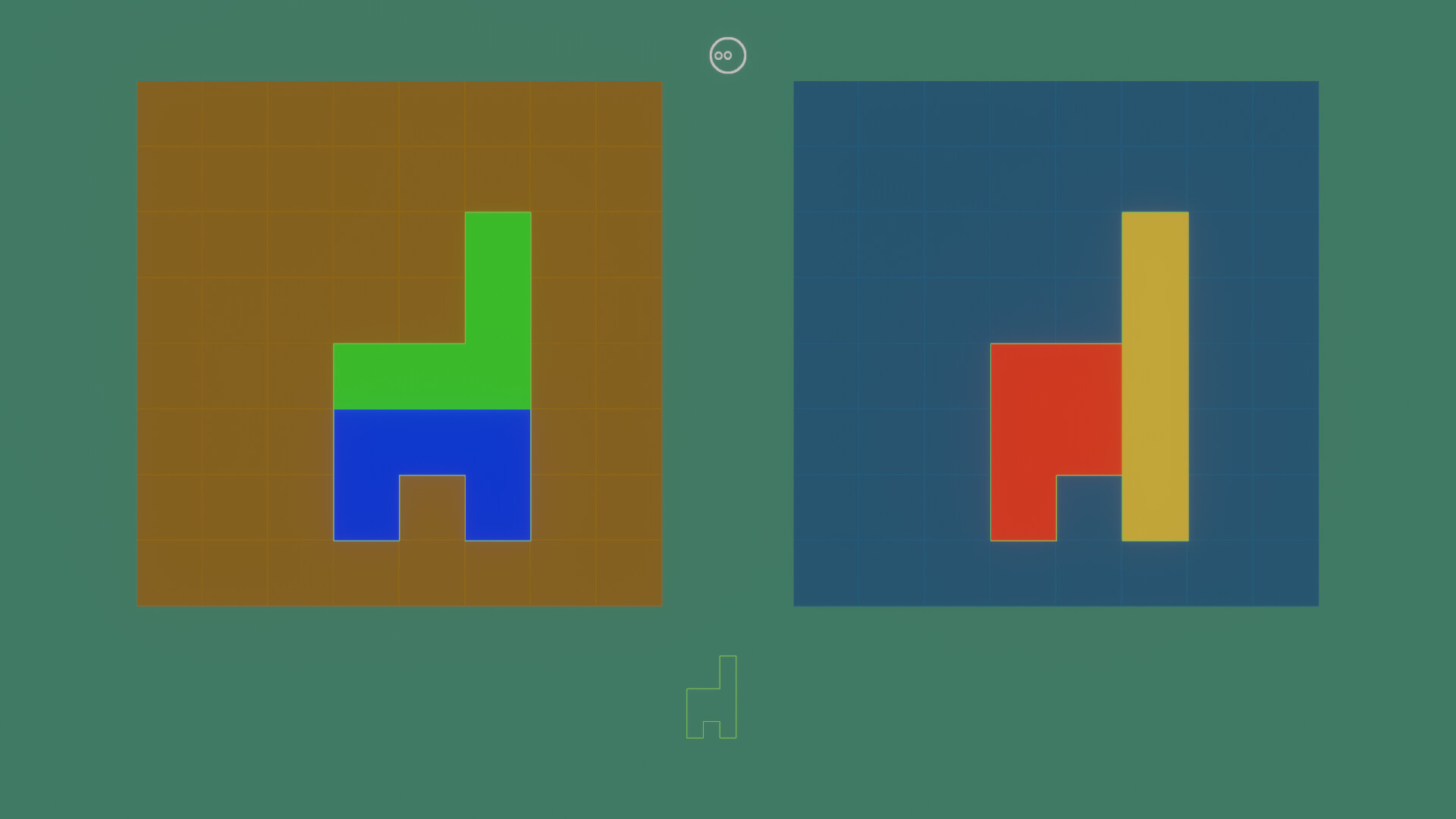 A simple, yet difficult puzzle game. Manipulate two pairs of pentominoes to form combined shapes with the same outline. There are 513 different solutions.