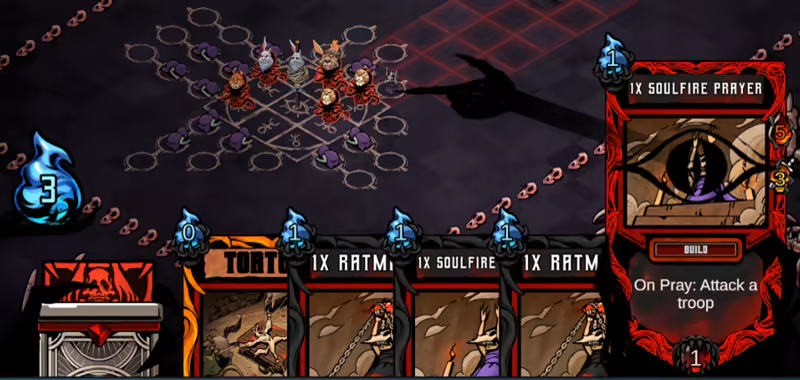 Fall and rise again stronger! Each defeat fuels your twisted evolution. Gather profane knowledge, unlock increasingly potent cards, construct vile edifices, and enhance your dark gifts.