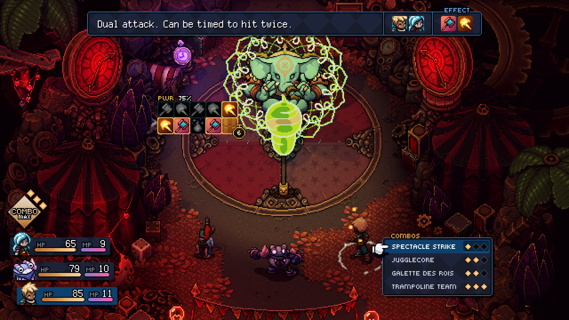 The world of Horloge plays by different rules, and for their magic to manifest, the Solstice Warriors will need to adapt. Zale will tap into his agility to become a Juggler, while Valere will harness her balance to dazzle as an Acrobat. Playing to the circus-themed curse, they will unlock a completely new set of attacks, damage types, skills and combos.
