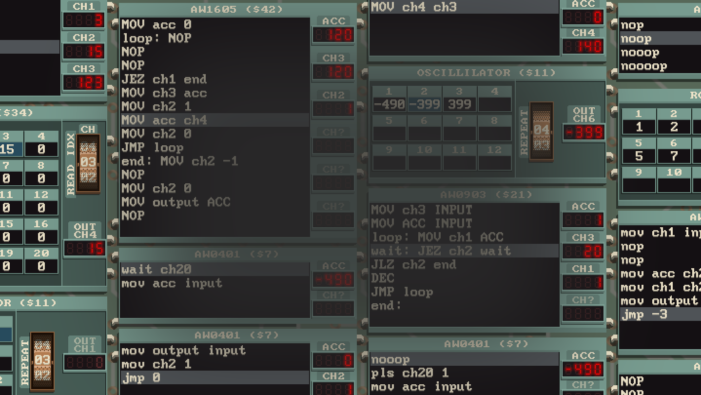 Solve programming puzzles on a fictional computer with radio-based communication and unique limitations. Competitively optimize to compete on leaderboards against friends and the global community.