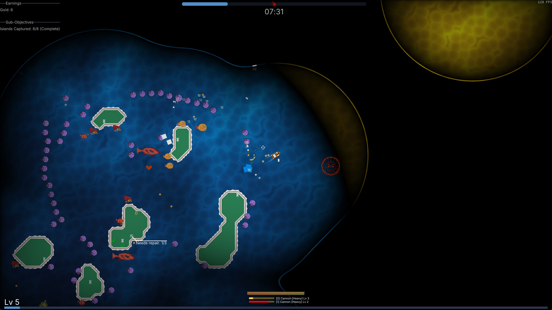 • 3 droppable items (via the oyster): health pack, xp vacuum, sea-mine.