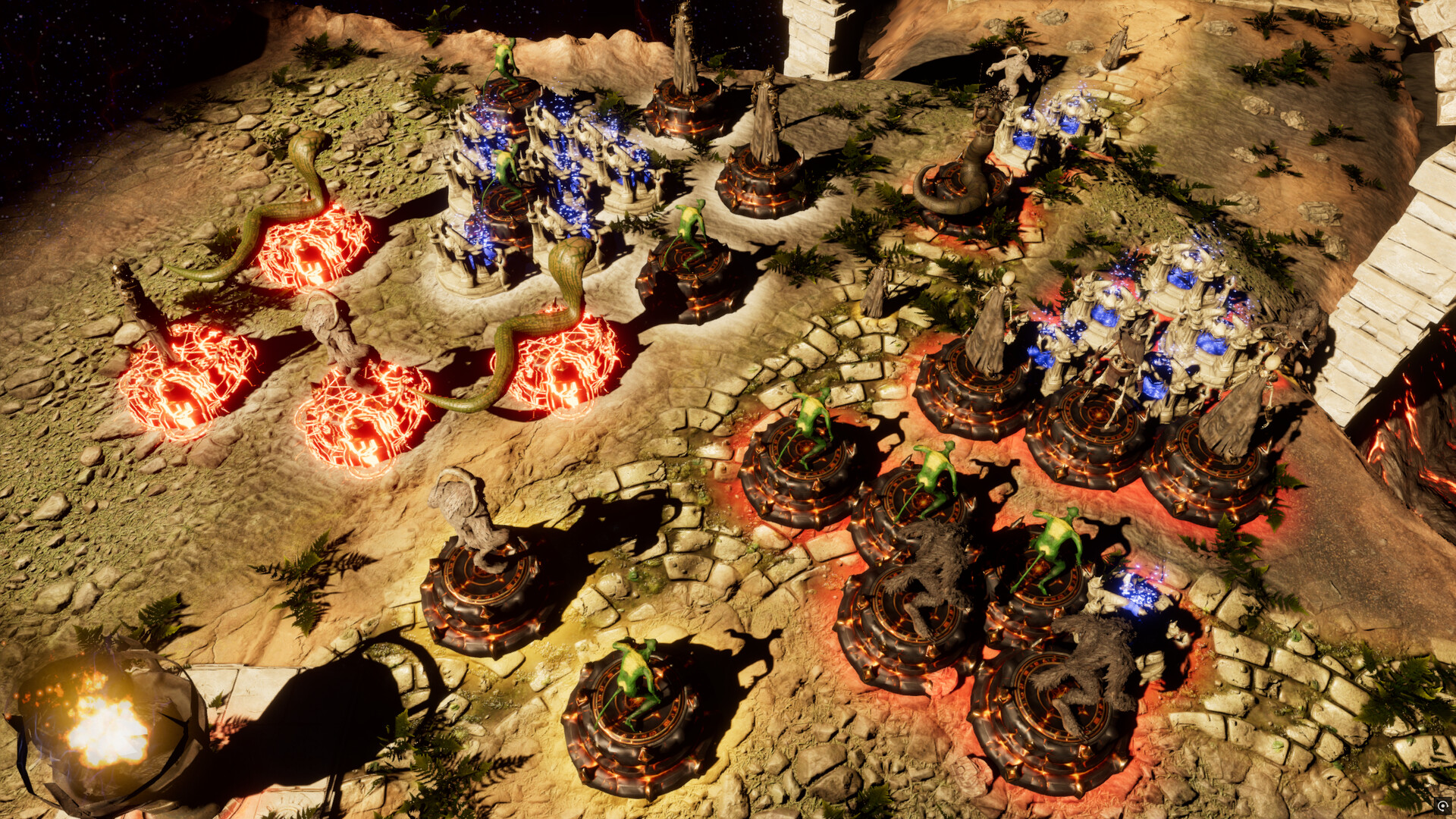 Choose your shrines, shape your army, and push the frontlines forward as you battle through a map of Trials. Defeat formidable bosses, experiment with different builds, and discover powerful combinations of units and Blessings.