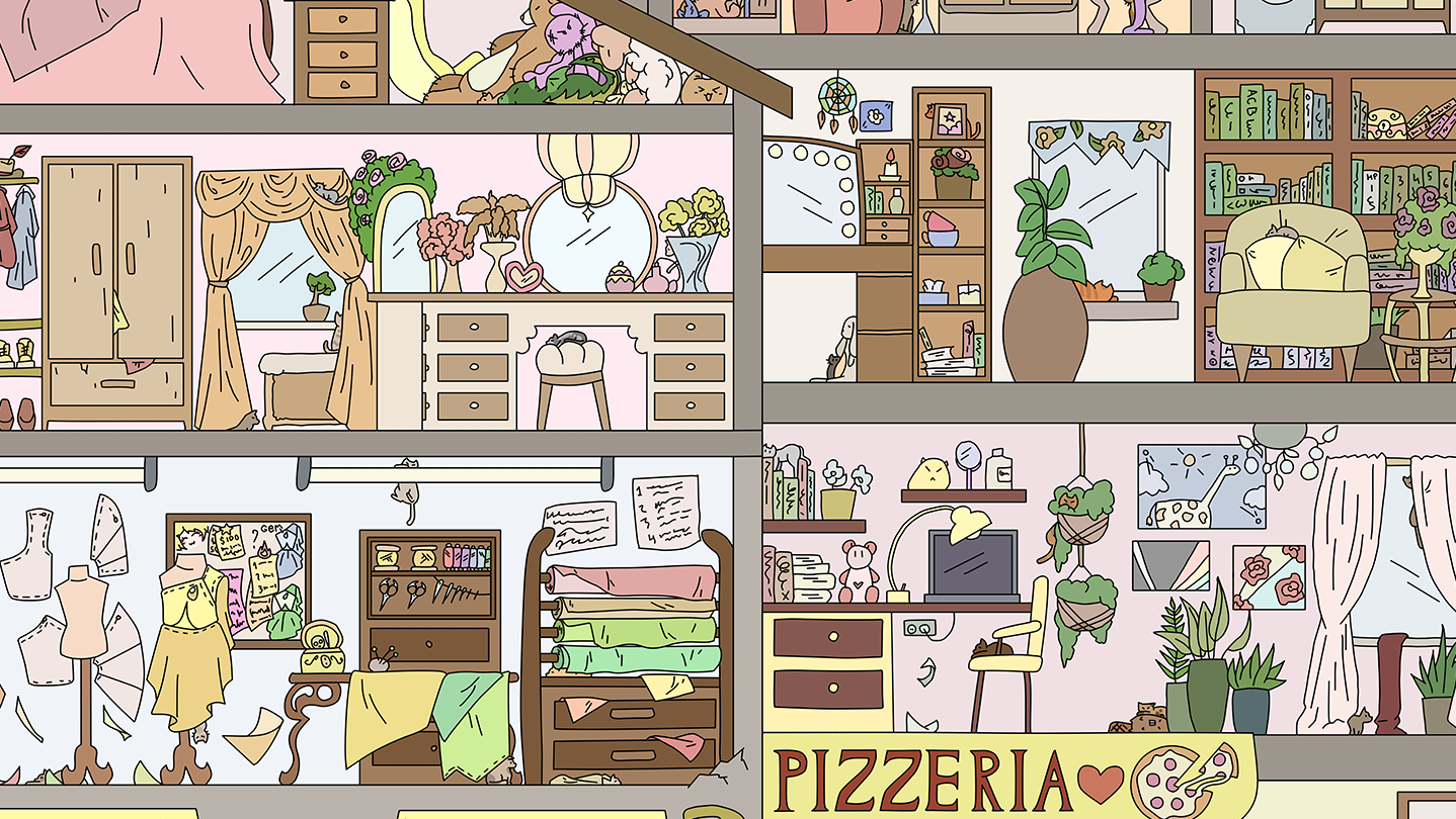 Go on a short but sweet adventure into the black and white world of an urban area! Enjoy the search for cats and recreate a colorful picture. 150 cute cats are waiting for you! Play and relax!