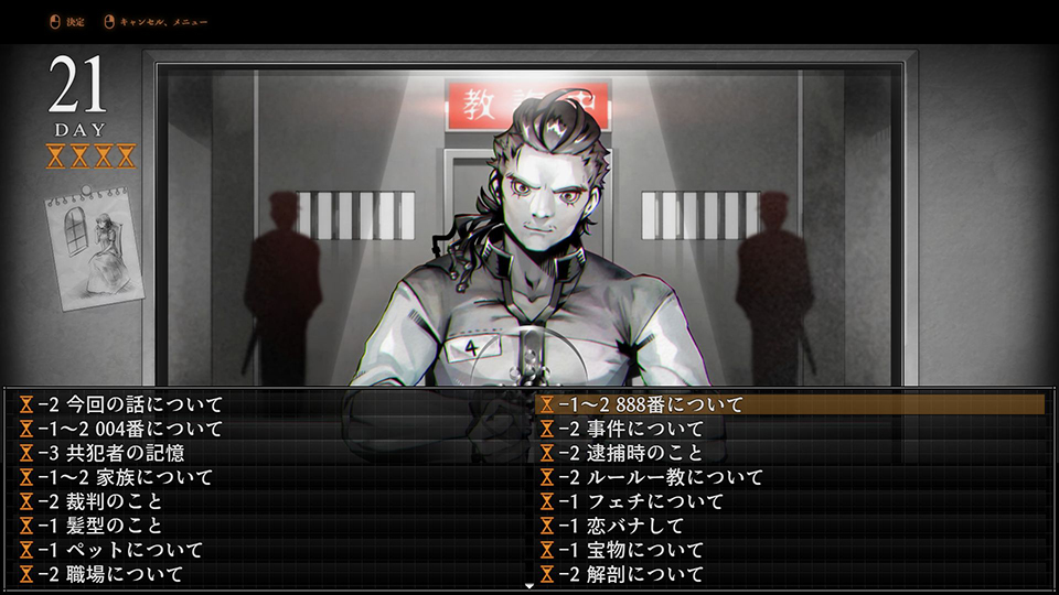 与えられた時間を消費することで死刑囚と雑談したり、事件にまつわる書類を読んだりすることができる。