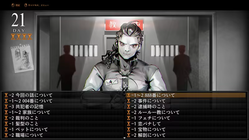 与えられた時間を消費することで死刑囚と雑談したり、事件にまつわる書類を読んだりすることができる。