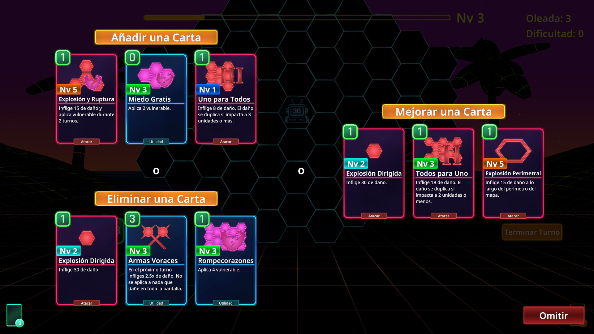 Hex Blast es un deckbuilder roguelike de supervivencia contra hordas donde estratégias en un hexágono, encadenando combos de cartas explosivas para eliminar hordas cibernéticas.