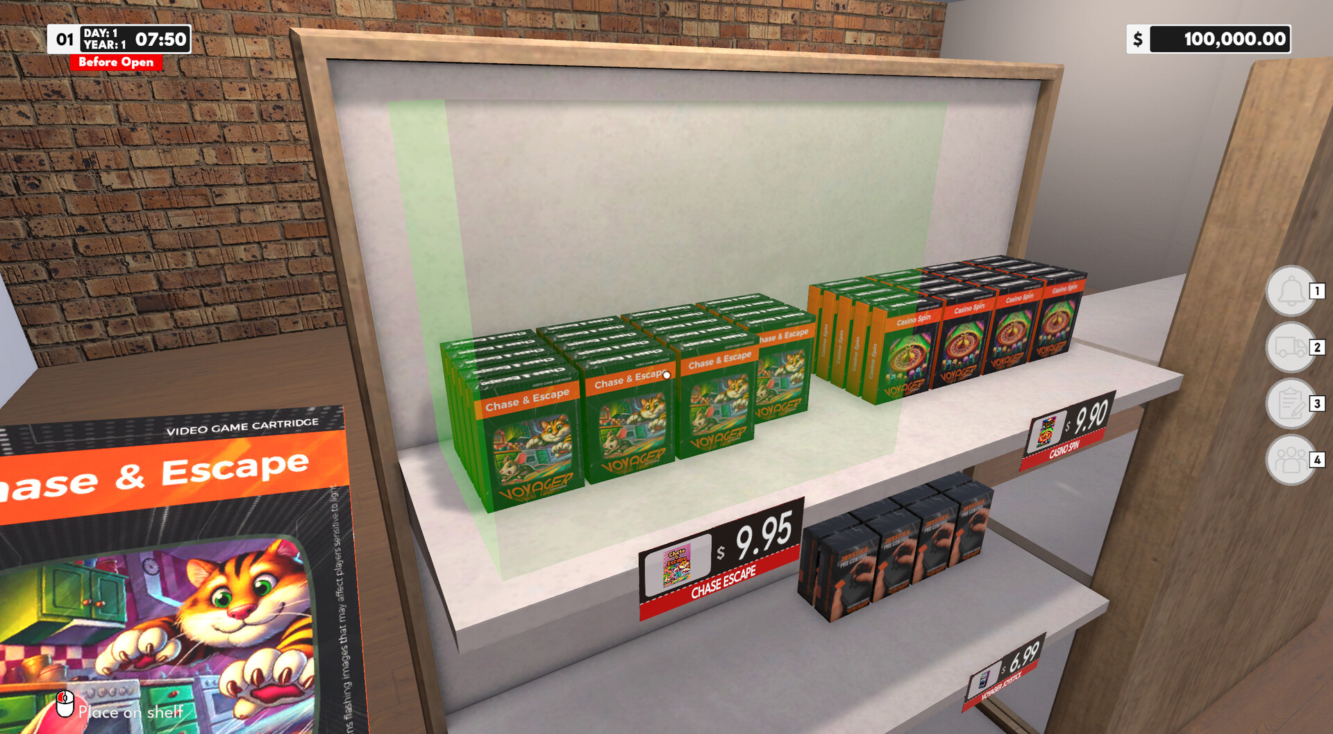 Start your journey by browsing product catalogs to pick and choose items for your store. Call suppliers to place your orders and receive deliveries. As time progresses, upgrade to more advanced tools like in-game computers to streamline your inventory management. Whether it’s selling the latest console, nostalgic games, or must-have accessories, balancing supply, demand, and customer satisfaction is critical to growing your business.