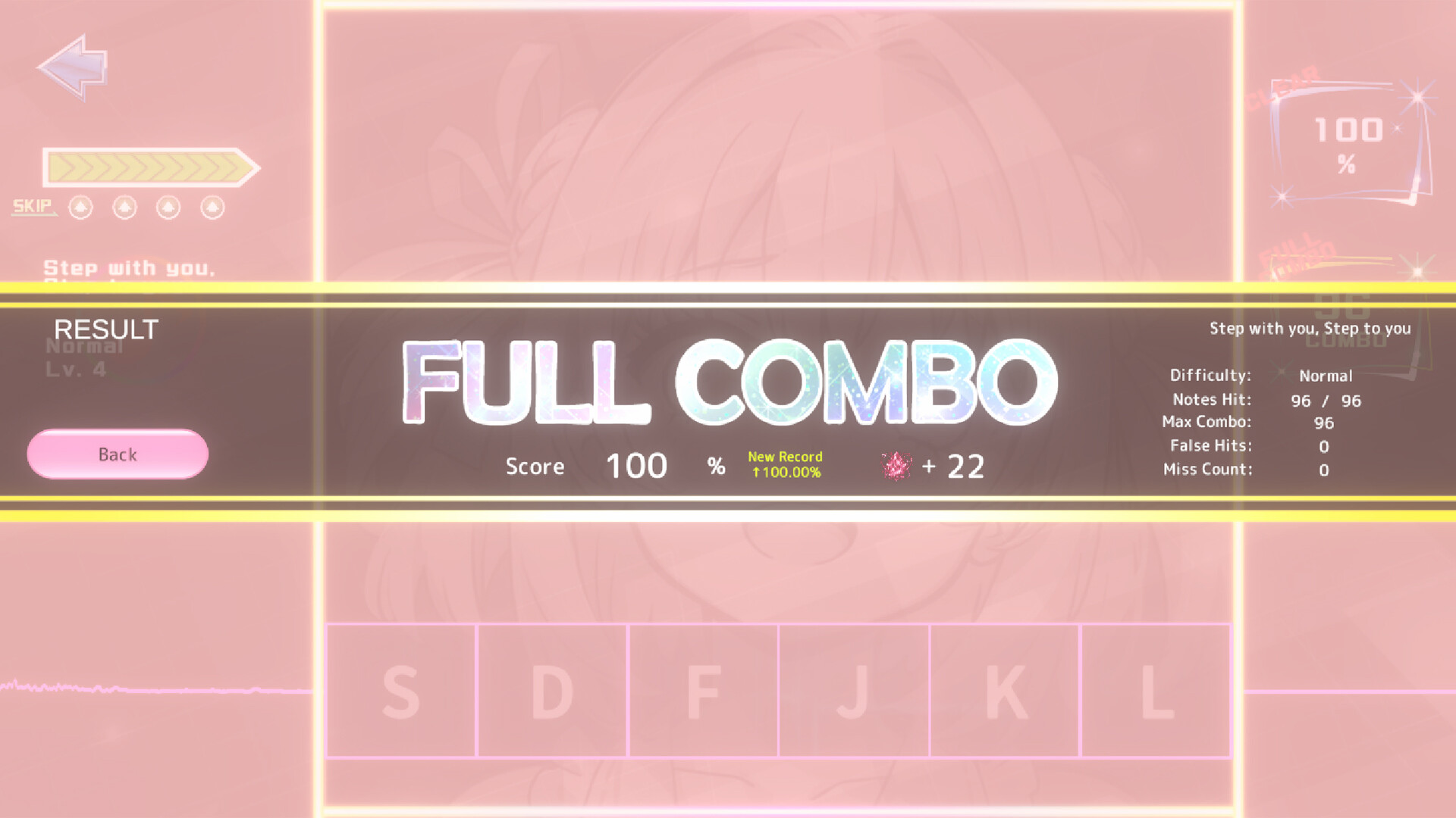 Clear a song by achieving 80% completion, and aim for a Full Combo (100%) by mastering each chart.