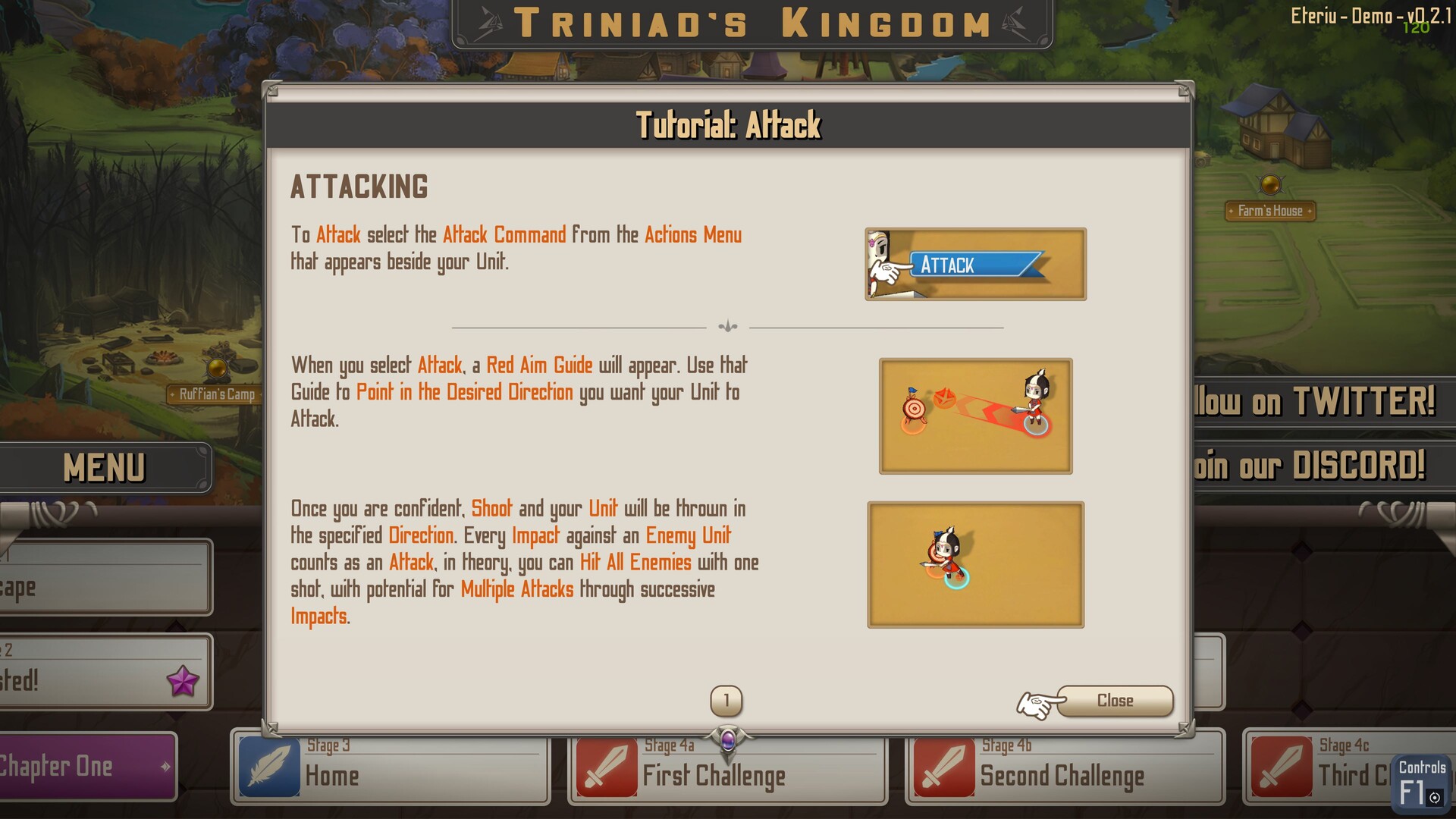 Replay each stage as many times as you want to farm Eteriu Dust (experience), collect items, test strategies, and discover new victory conditions. You can also revisit that annoying Boss later to take it down in one shot! Use the Button Map to navigate the continent and find any previous stage you wish to return to.