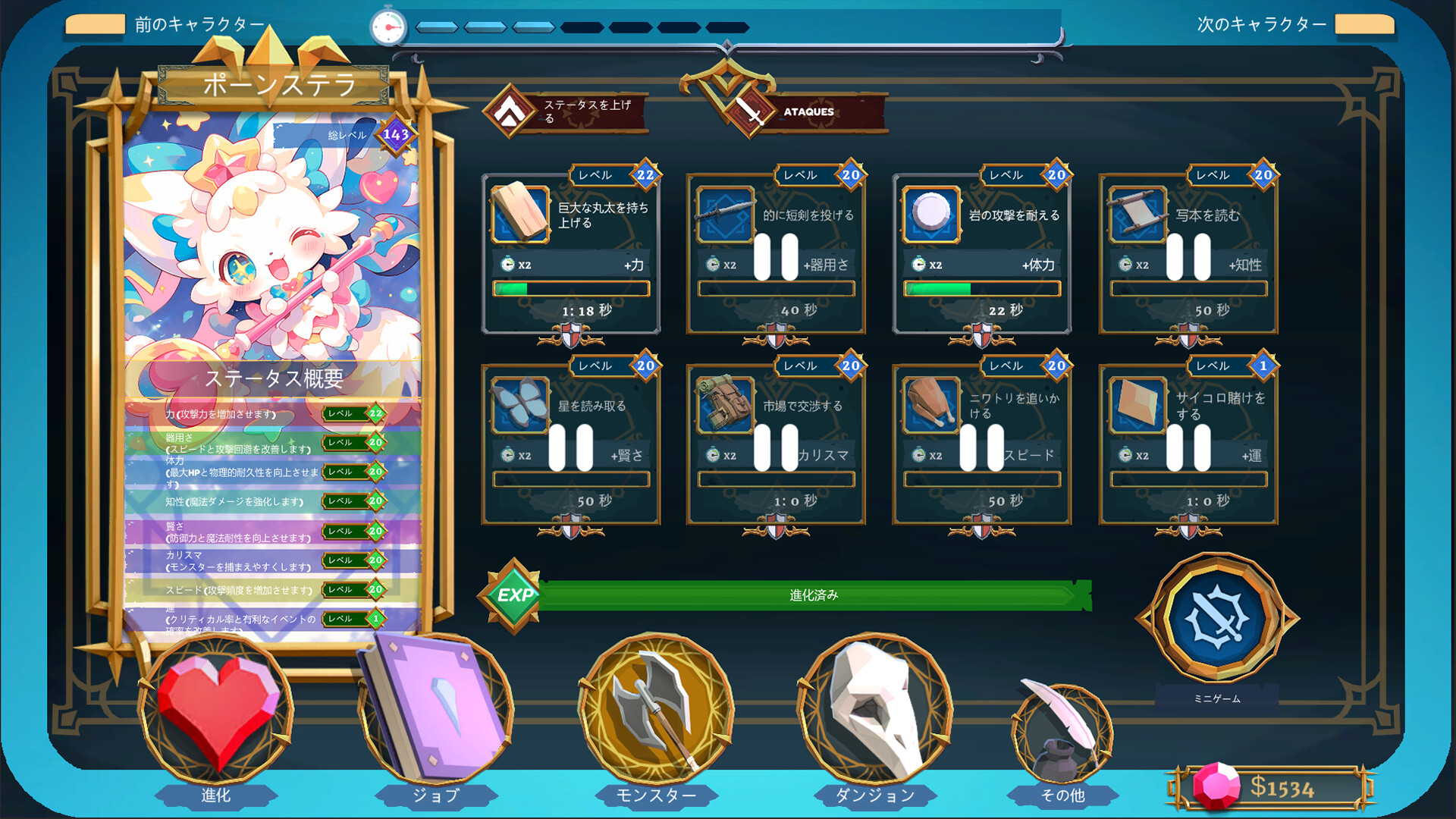 戦闘や恋愛に忙しくないときは、拠点の強化に専念しましょう。スキルを鍛え、装備を整え、冒険の準備を整えましょう。どんな冒険者でも、リラックスして社交を楽しむための居心地の良い場所が必要です!