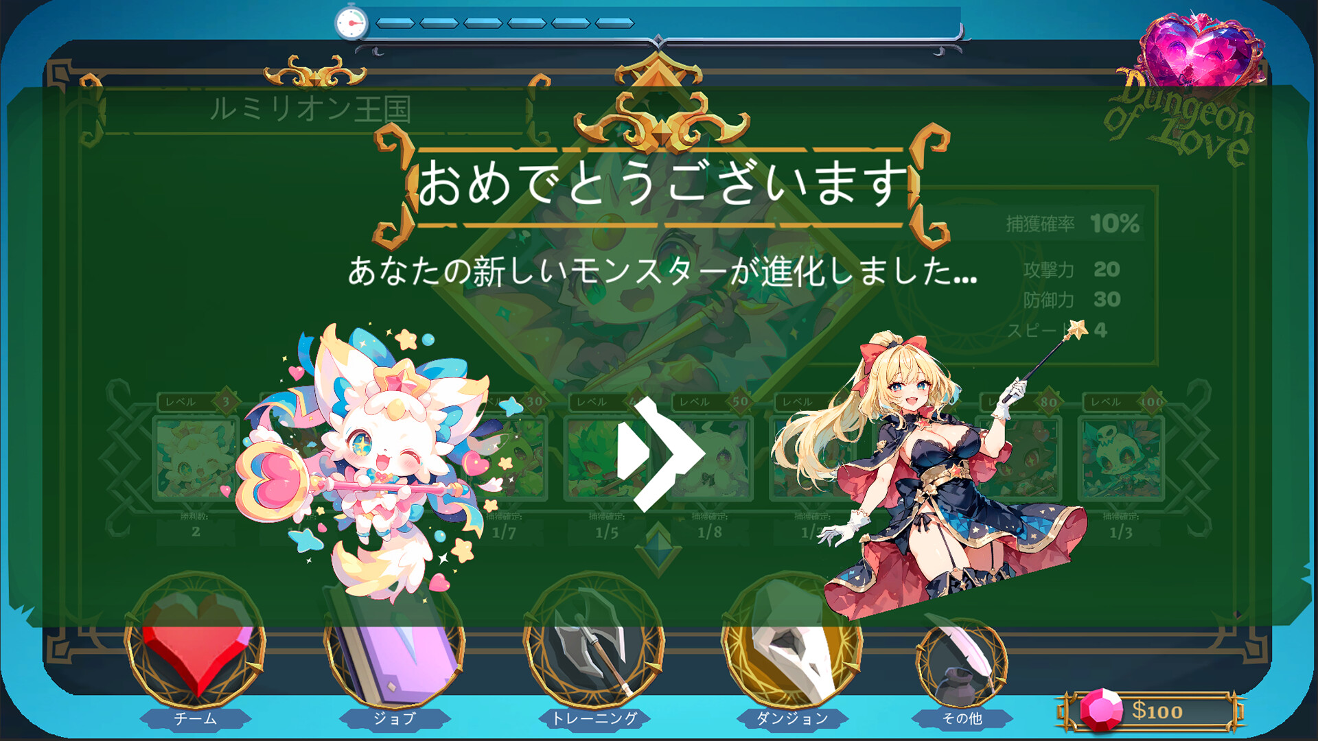 捕まえられるクリーチャーのリストを広げるために新しいモンスターを追加したり、探索をさらに楽しくするための新しいダンジョン、異なるデートモード、装備、そしてベース管理を改善する要素を追加することで、Dungeon Of Loveの体験をさらに魅力的にします。