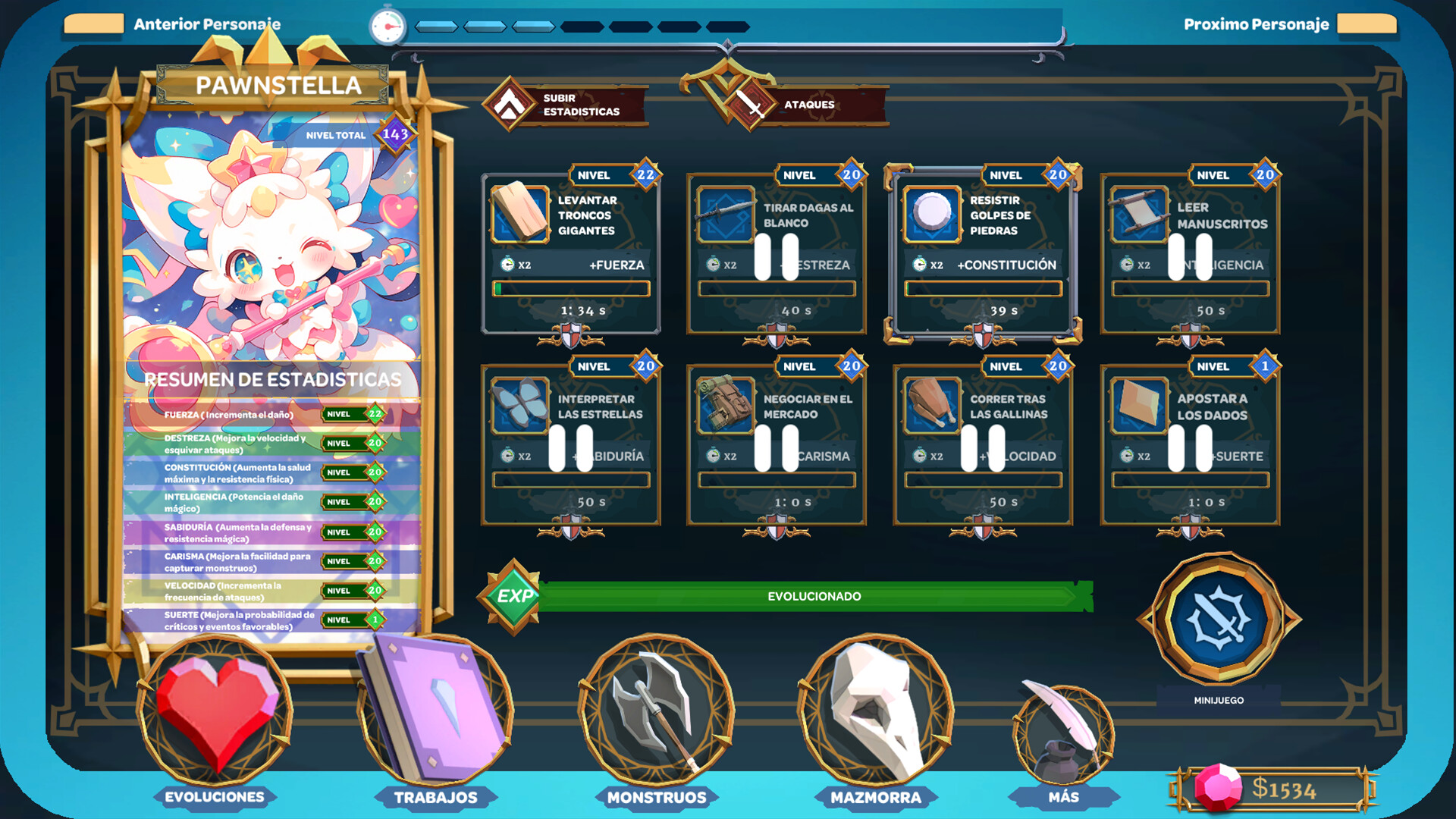Cuando no estés luchando (o enamorando), dedícate a mejorar tu base. Entrena, afila tus habilidades y gana dinero para equiparte hasta los dientes. ¡Recuerda, hasta el mejor aventurero necesita un lugar acogedor para relajarse y… socializar!