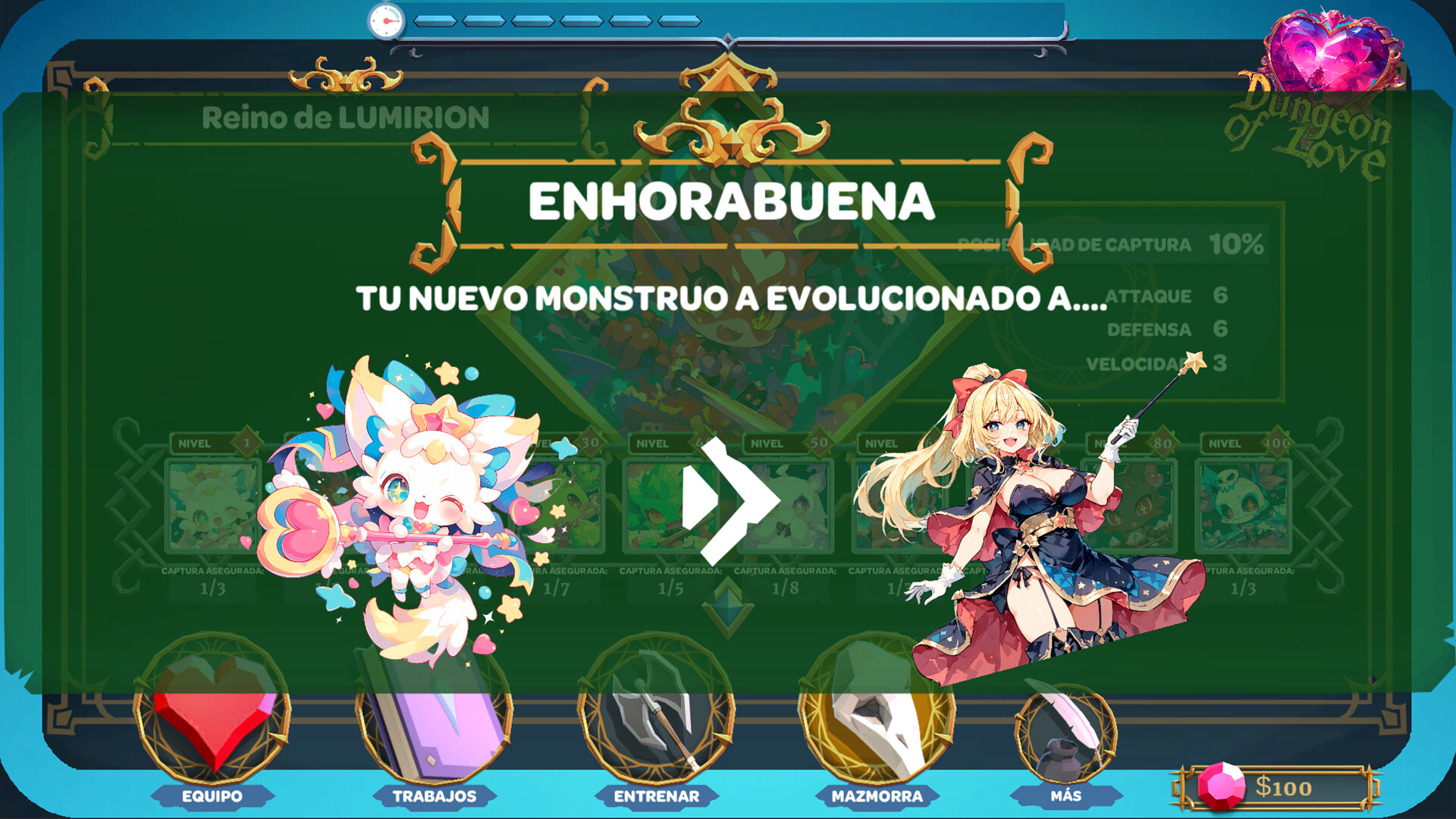 ¿Listo para adentrarte en mazmorras llenas de peligros, emociones y… tu próxima cita romántica? En este mundo, cada combate puede cambiar tu destino, ¡porque los monstruos que captures no solo se unirán a tu equipo, sino que podrían convertirse en tu pareja soñada!