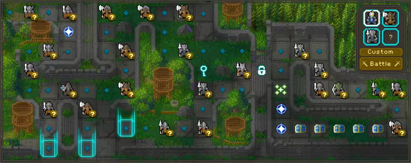 • During your movement turn, each of your units can only move forward and cannot move backward. You must plan each unit's path strategically to gain an advantage and reach the Boss.(If you return to the starting point, you will be able to retrace your previous path.)