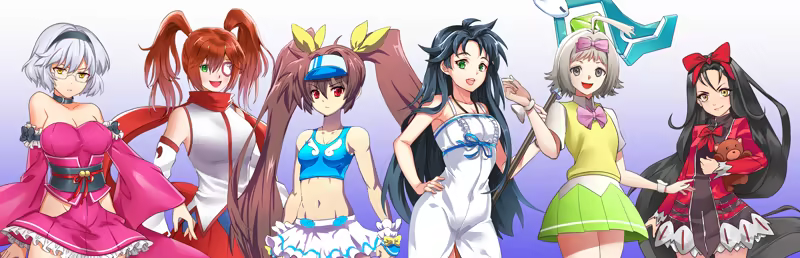 The game contains fanservice-oriented character designs, with revealing outfits and exaggerated body proportions.