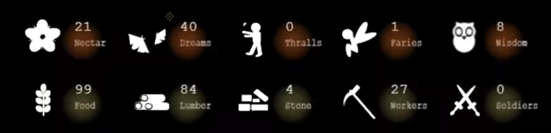 In this game you will run a colony of fairies. Your relationships with your human neighbors are complicated. From one hand, you rely on their resources (mainly their dreams) to grow. From the other hand, their expansion will eventually overrun you.