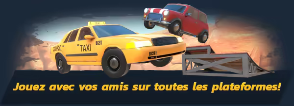Hâte de découvrir LE terrain définitif pour les cascades en voiture ? Amusez-vous comme des fous dans ce jeu multijoueur et multiplateforme avec liberté totale de mouvement ! Conduisez des monster trucks, des chars et d'autres véhicules incroyables dans un monde ouvert gigantesque. Montez de niveau, participez aux évènements, gagnez de l'argent, débloquez de nouveaux véhicules et découvrez des secrets... Crash Drive est de retour !