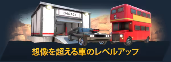 ニトロブーストを使えば、車のニトロ性能が上がり、最高速で走れば、さらに速度を上げることができる…わかってもらえたかな?車の全性能を最大化することで、プレイヤーレベルが上がり、新しい車やカスタマイズオプションが購入できます。50 種類以上の車を集めて、ファンキーなアンテナ、ブースト、ゲーム内での名前が入った独特のナンバープレートなどで車をカスタマイズしよう。プレイヤーレベルが最高に達すると「名声」が使えるようになり、「Crash Drive 3」のキングであるあなたの実力を示すことができるようになります!純金の車なんてどうですか?