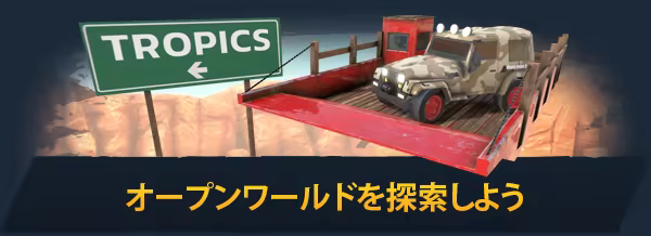 カースタントができる場所の登場です!クロスプラットフォーム対応のマルチプレイで自由探索ができるゲームで、ハチャメチャな楽しさを味わってみよう!モンスタートラック、戦車、もっと驚くような車両で巨大なオープンワールドをドライブしよう!