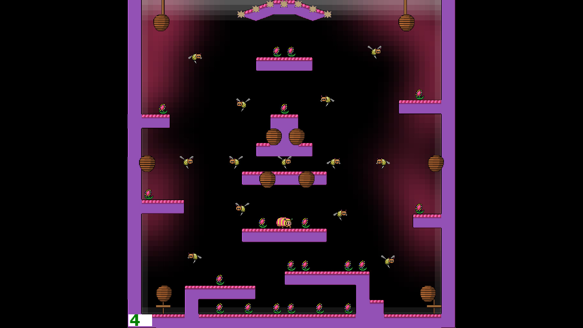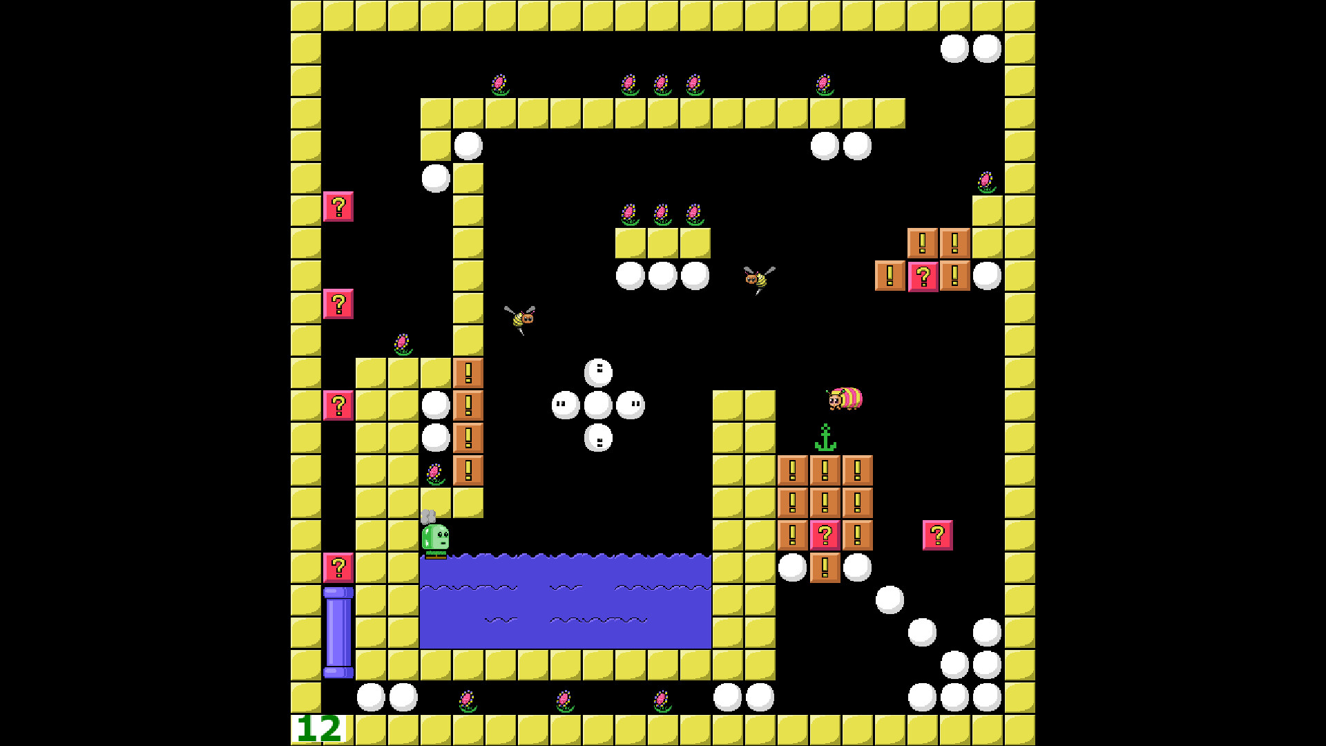 As usual, the caterpillar can't jump on its own. It can fly from place to place like a butterfly, bouncing off various game objects in its path. It also moves around the level on pipes.