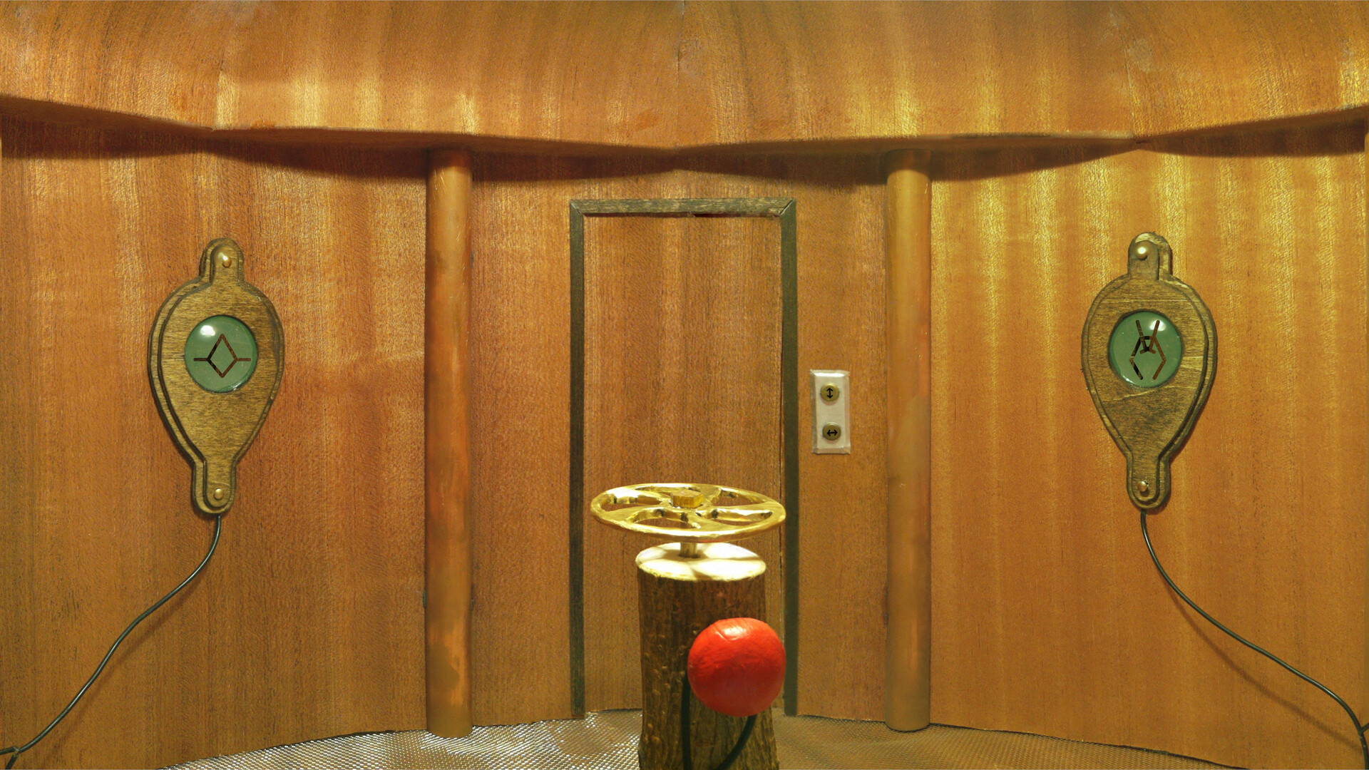 Pipes and valves, pools and wires, inscrutable symbols; the abbey is suffused from one end to the other in bizarre machines designed (somehow) to contain the influence of the mad god, and they’ve all gone awry. Make your way through the eerie felt hallways, up and down the crystal-lined stairs, slowly but surely making sense of the labyrinthine contraptions around you. As your mind turns sideways, the world begins to seem straightforward!