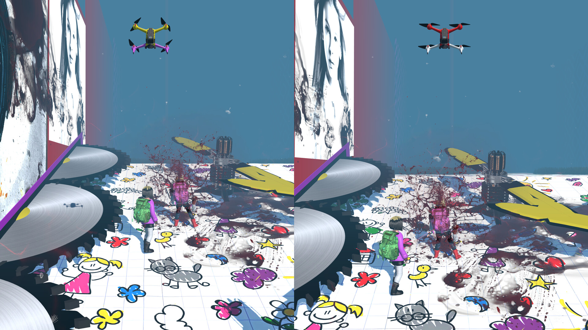 The game unfolds from a third-person perspective. Players take control of girls who must navigate a scenario while avoiding dangerous traps. In this game you will die many times! And in the most violent and agonizing ways possible. STAY ALIVE is a game of trial and error. Discover the limits of your patience and test your skills – how far can you go without dying in the attempt? Bloody game.