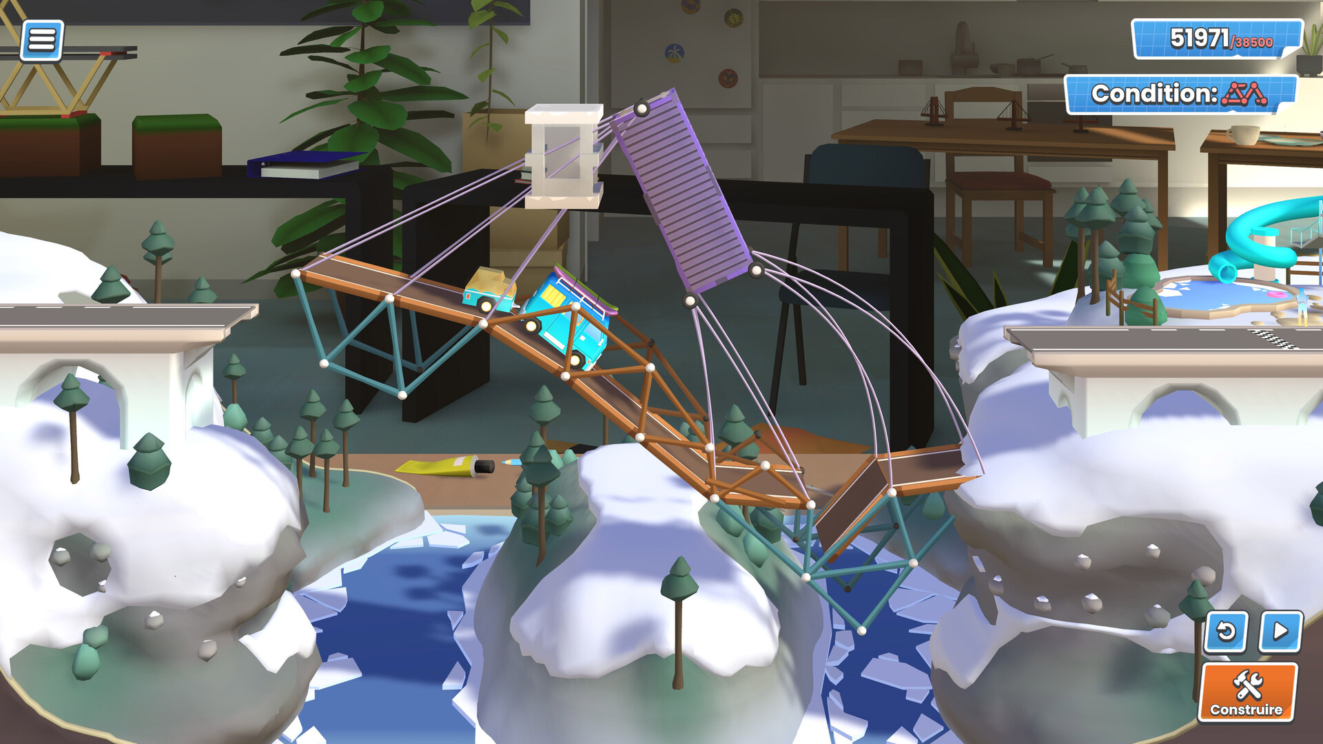 • Une créativité sans bornes : aucune restriction de budget ou de matériaux n'étant imposée, vous êtes libre d'expérimenter et de construire sans contraintes. Si vous aimez les défis, vous pouvez également obtenir une récompense supplémentaire en respectant le budget fixé, mais assurez-vous tout de même que votre pont soit suffisamment résistant !