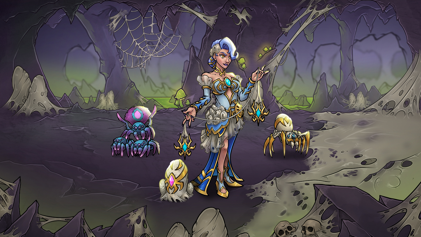 Deep in the shadows, Tulah, the Spider Queen has been waiting. This brand-new hero brings a new deck-building strategy with her ability to summon spiderlings — tiny allies that weave their way into your hand, reshaping combat in new and unexpected ways.