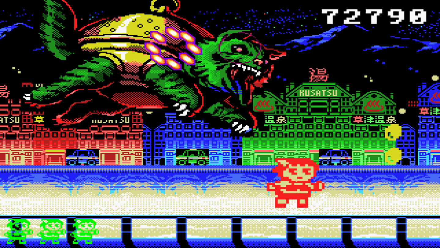 It's a pseudo-retro 2D side-scrolling shooter with a variety of gameplay in 8 stages, with visuals (TMS9918A spec V9938 palette) and sound (PSG+SCC) enhanced to mimic the MSX standard popular in Japan in the 1980s. Formerly released for smartphones in 2014 and then passed through Steam Greenlight, the release was delayed for about 10 years due to the production company's busy schedule (Final Re:Quest The Movie). The overall volume of the game has been increased to compensate for this. The controls are very simple and familiar. The player controls a cute little girl with dots, and defeats various enemies with a series of automatic shots. The game is inspired by good old Japanese culture, Gunma's nature and customs, in the 80's style, and the ending may change some by discovering various hidden items in the stage. We aimed to create a simple and kitschy shooting game before the bullet-hell shooters. We hope you will enjoy this game if you are tired of complicated modern games.