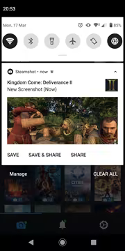 Steamshot makes it easier than ever to enjoy and share your screenshots! Whenever you take a new screenshot, Steamshot instantly transfers it to your phone, complete with a push notification. From there, you can quickly share it with friends, other apps, or save it to your gallery.