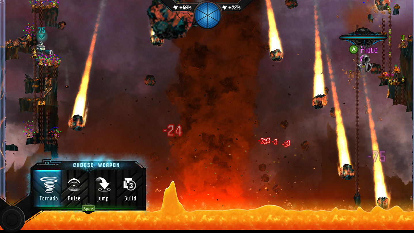 Duke it out with massive alien robots during the peak of the Mayan civilization. Nuke, zap, implode, incinerate and destroy your friends in singleplayer or local multiplayer. Win the adoration of your tiny Mayan tribesmen, and keep an eye out for Mayan Gods who will try to crash your party.