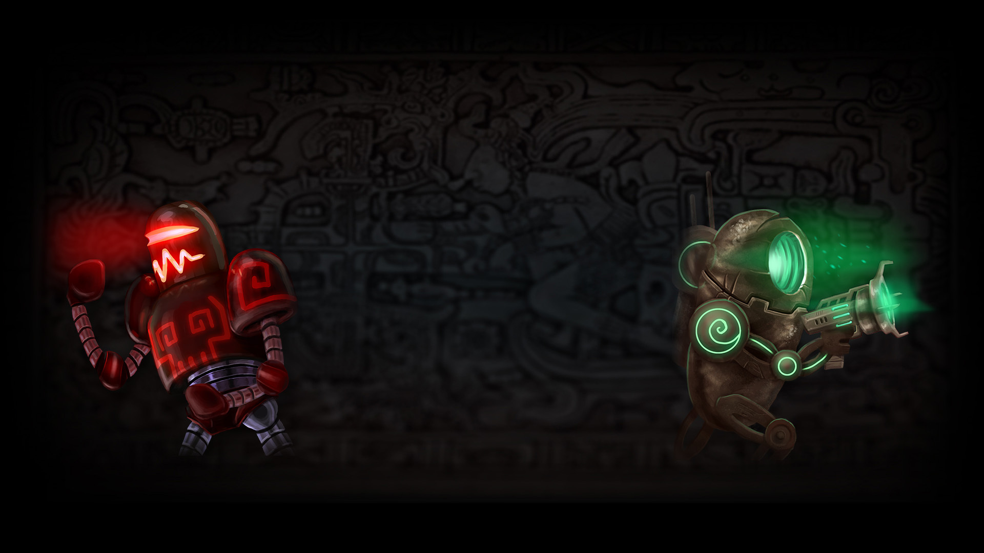 Mayan Death Robots reinvents the artillery genre (think Worms) in a Mayan setting invaded by alien killing machines. Pick a robot from the roster and enter the arena to destroy your opponent's power core. Aim your weapon before the timer runs out, but don't be distracted by the pretty scenery: when the rockets start flying, you already need to plan your next move! Will you choose to move your robot to a better vantage point, or will you build defenses to keep your opponent from landing a killing blow?