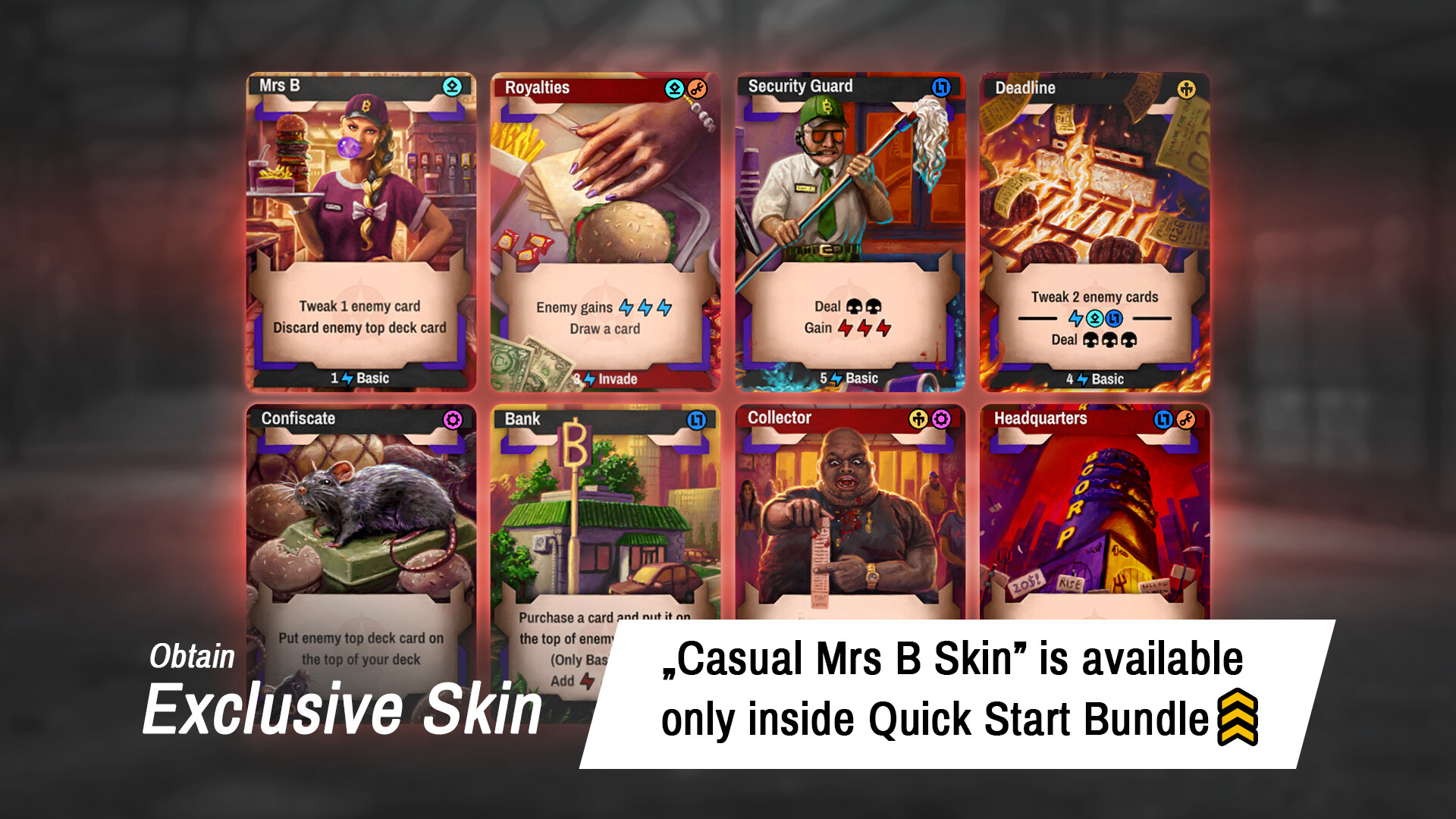 Quick Start Bundle is dedicated to both new and advanced players who would like to speed up their SUR5☢️ progression; immediately unlocking thousands of exciting Survivor combinations and synergies to explore! Instant access to almost all cards also gives more strategic options to compete during Brawl events.