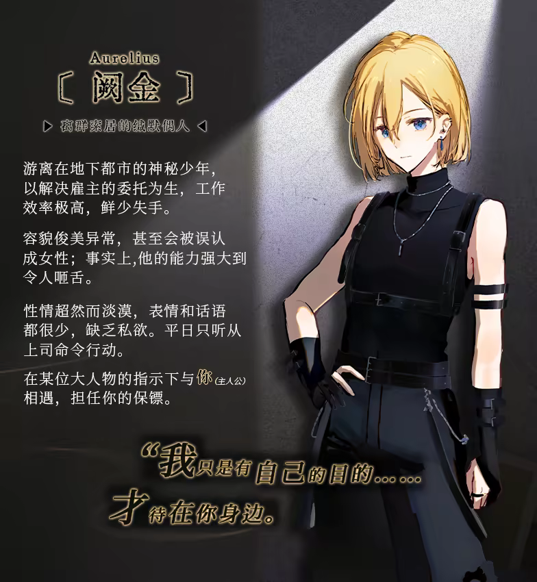 阙金活着,只是因为他的生命体征还存在,换言之,生命对他而言只是一件顺水推舟的事——他没有欲望,包括求生欲,与此同时缺失的还有他的情感·……这位美丽过人的少男好似一只人偶,皮囊之下空无一物,但随着时光流逝,你逐渐察觉到他的秘密可能比所有人预想的还要多·····