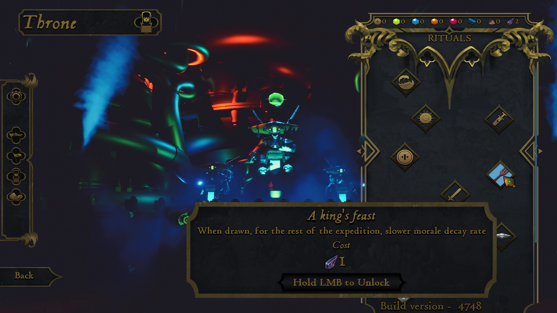 In this demo, explore multiple randomized depths from the first region, "The Shoals", and rebuild the Resource Ward as well as the Tailor for your Kingdom.
