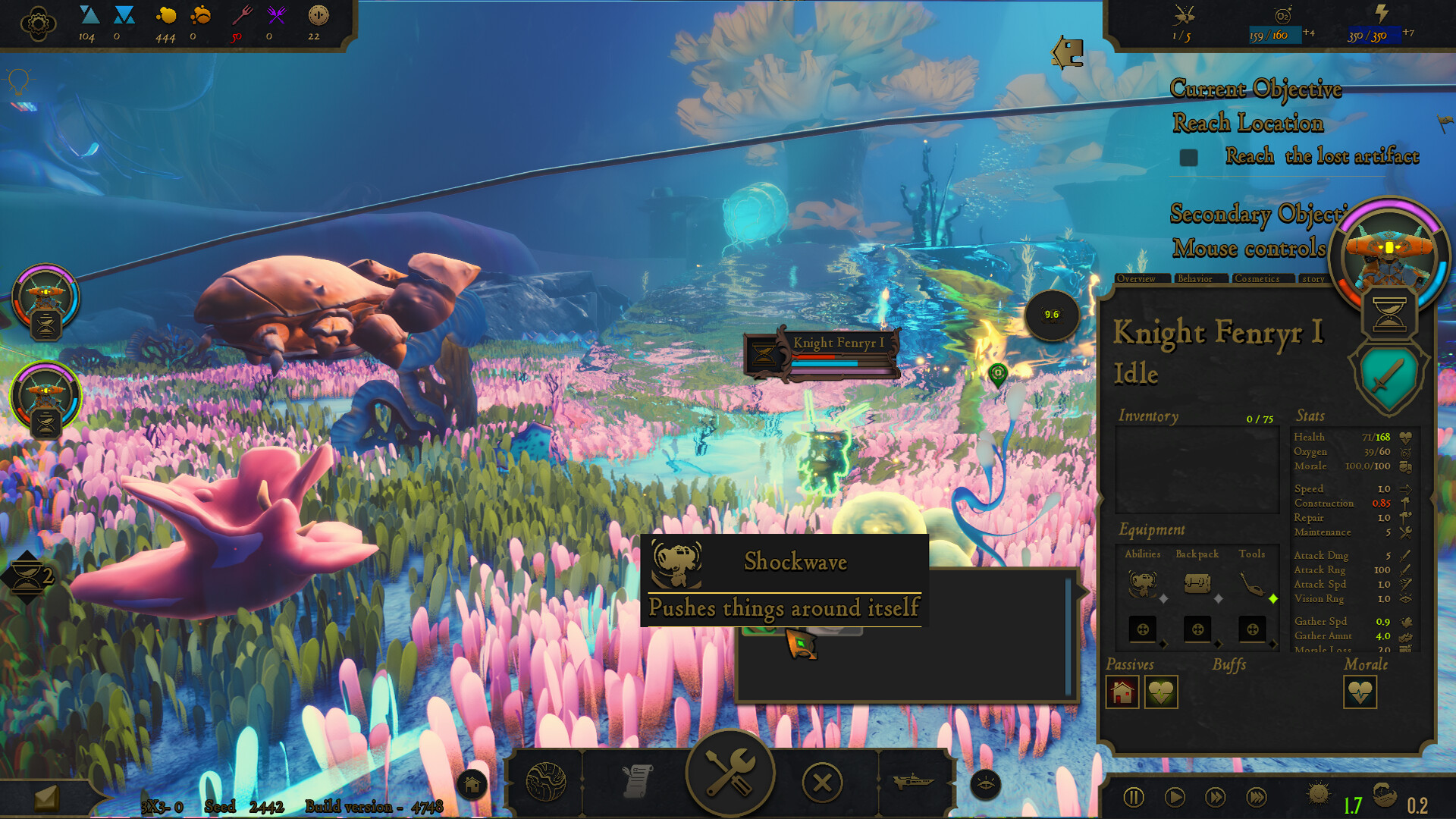 Explore the uncharted depths of Tethys, and scavenge resources and lost technologies, to survive the dangers of the abyss. In this demo, lead expeditions of Knights through the unknown region of the Shoals, and help them rebuild their long lost Kingdom.